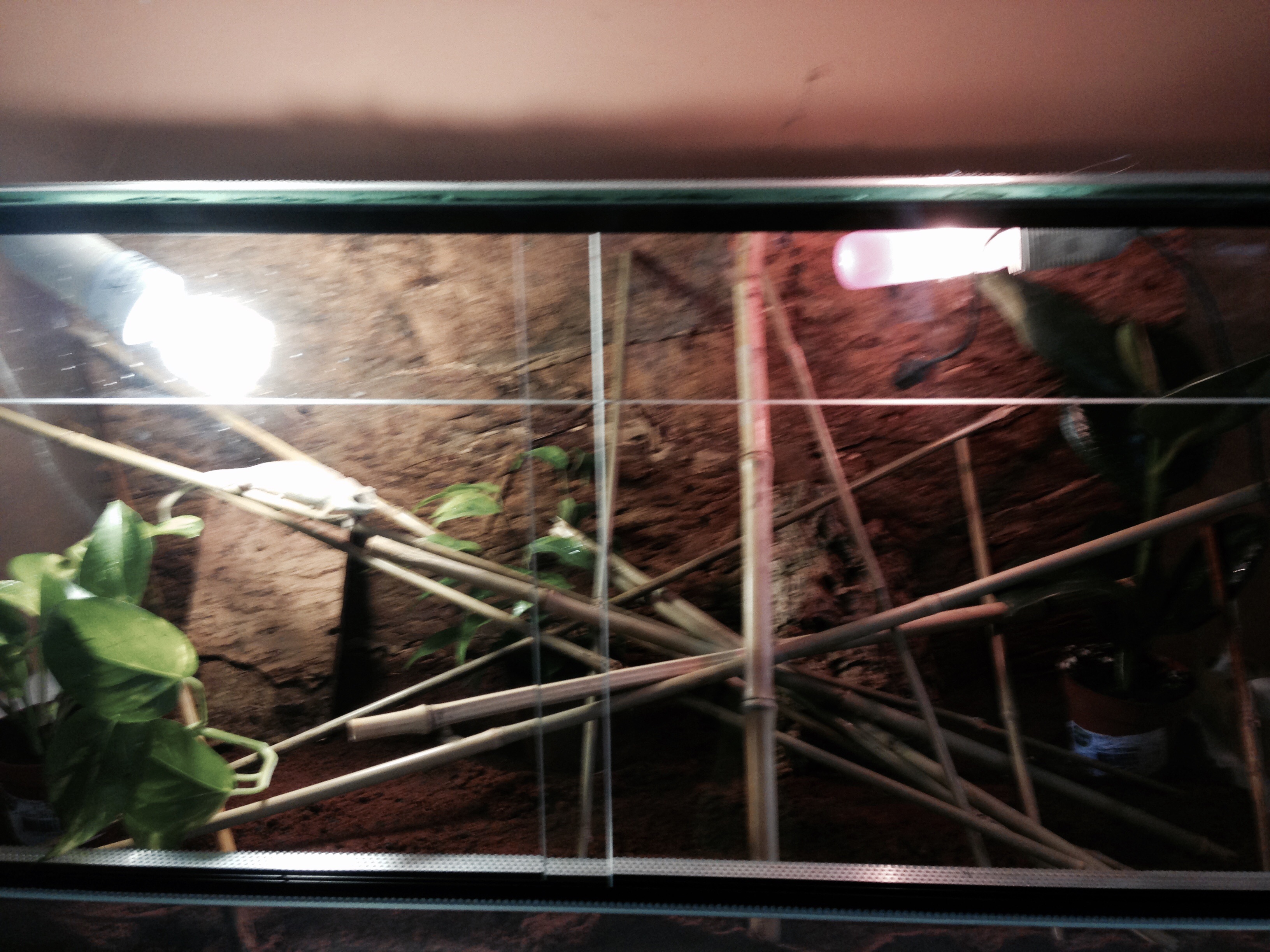 terarium je delka 80 sirka 40 vyska 50 vim ze ma byt vyssi ale tohle je jen tak na 2-3 mesice max pak bude mit vysoke podklad pisek+raselina pisou 1 ku 1 mam mozna trosku vice pisku