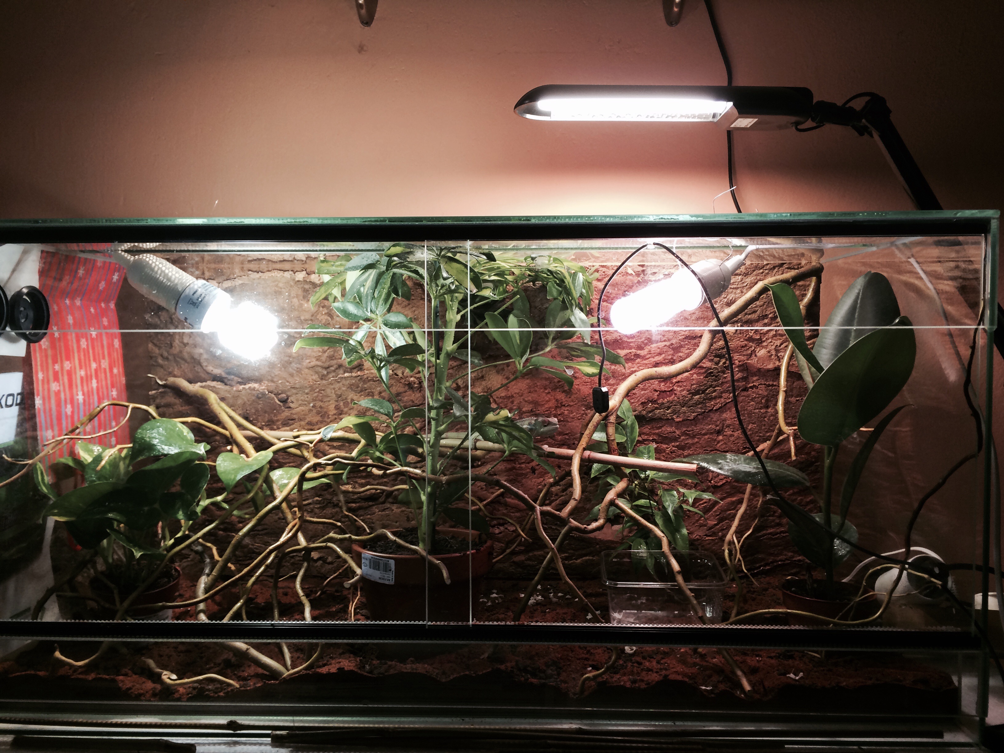 6)reptiglo 13w je docela male pro takovou nadrz.. urcite dokoupit 26w .. a pripadne sem vlozit fotky terarka. teplota pod zarovkou je jaka?.. meril jsi to?.