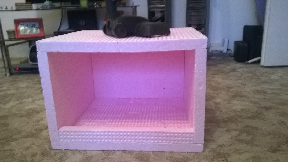 Zdravím ,tak jsem si včera hrál a toto je výsledek. Je to extrudovaný polystyren - Isover 30mm. Poloviny je lepená Mamutem a druhá je vrutama 6,3x60. Desky sem řezal lámacím nožíkem,docela to šlo ale už sem koukal na výrobu řezačky odporovým drátem. Musím teda říct že to drží parádně,asi bych použil jiné lepidlo a lepidlo+vruty najednou,kvůli pevnosti spojů.