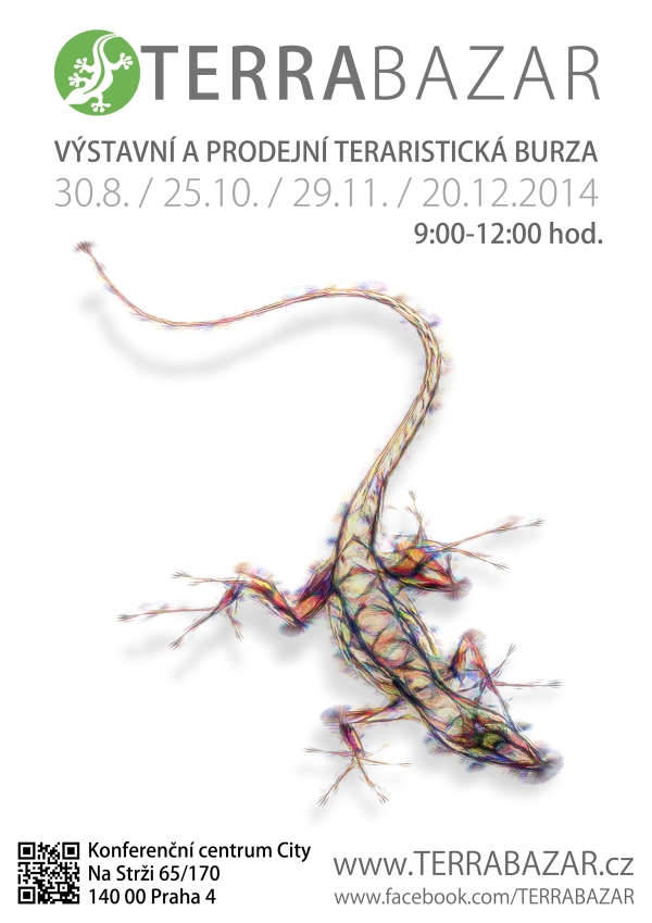 Zveme Vás na TERRABAZAR 25.10. TERRABAZAR je nejstarší teraristická burza v Praze založená Teraristickou společností Praha. Po dlouhé době změnil Terrabazar své působiště a přesídlil se blíže k metru Pankrác a bude se konat pravidelně jednou za měsíc.![[http://terrabazar.cz/images/cites/TERRABZAR2014.jp g]](http://terrabazar.cz/images/cites/TERRABZAR2014.jpg)