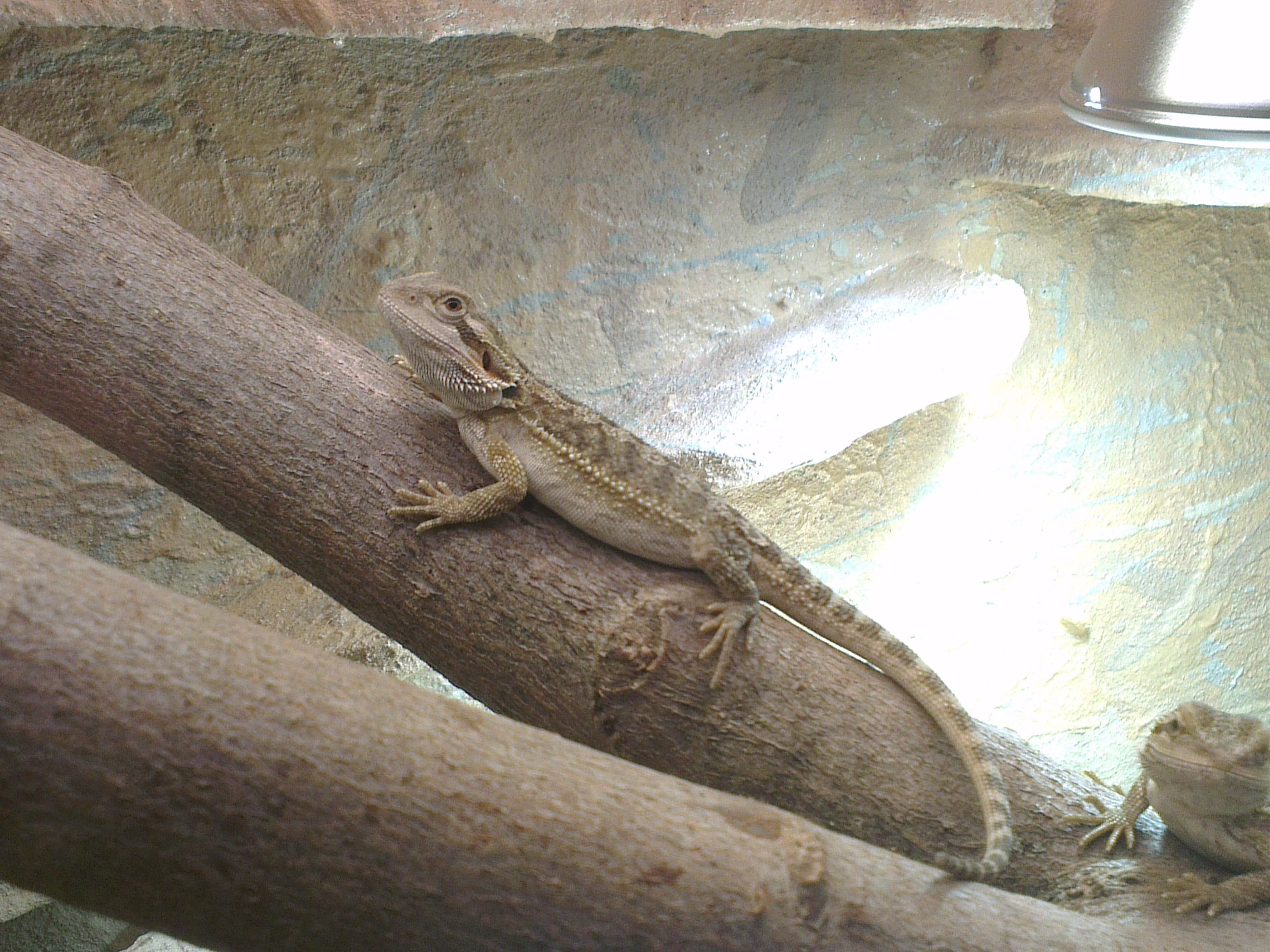 Terárium mají 90x50x65 s 3D pozadím a prostorem na lezení. Osvětlení je pomocí SunLux UV 50W PAR30 + led diodové pásky cca 10W, Výbojka je cca 26cm nad kamenem a teplota pod ní je nějakých 36°-39° zbytek terária se pohybuje v teplotách 25-26°, Větrání je jednou na boku a dva průduchy ve stropě.
