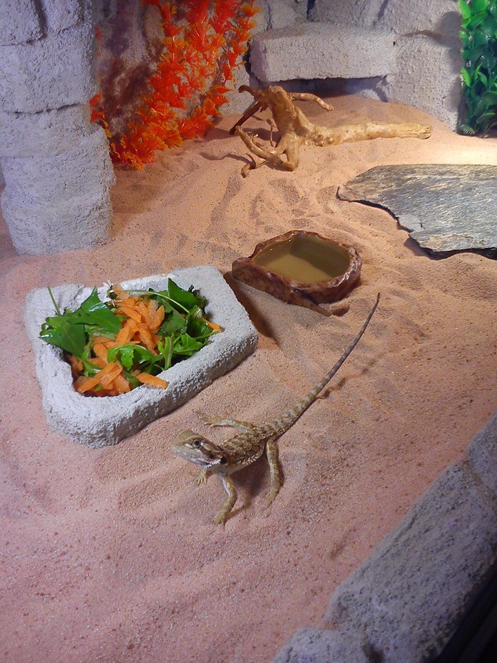 poprosím nakouknout zdali je terárko v pořádku :) na výhřevném místě má 41 st. a na tom nejchladnějším 27 st. Dneska jsme si ji přivezli domů - mám ji od soukromé chovatelky, která je od mala krmí z ruky a jsou zvyklé na chování. Nechali jsme ji v terárku aklimatizovat a už si tam pěkně běhá. Večer jsme zkoušeli dát minicvrčka, ale bez odezvy... Myslíte, že je to tím, že je pořád v novém? Děkuji za každou radu, jsem začátečník....