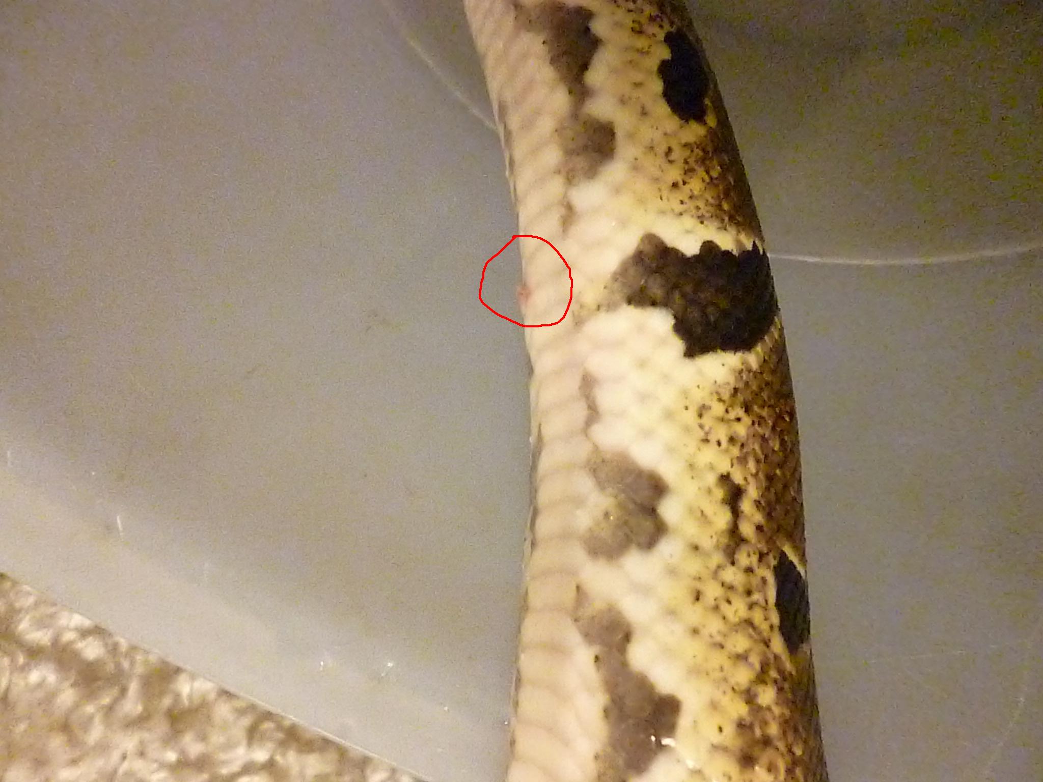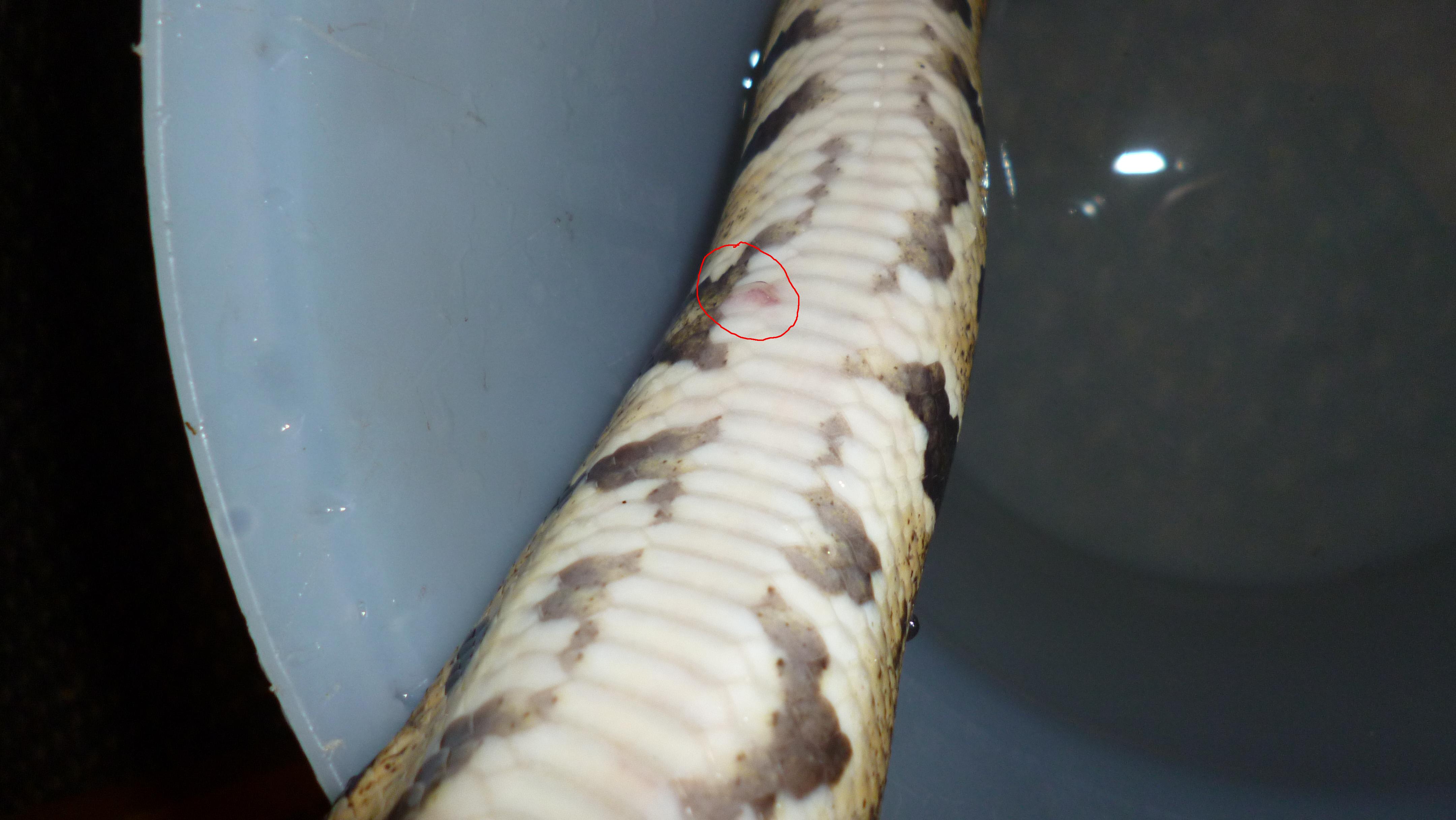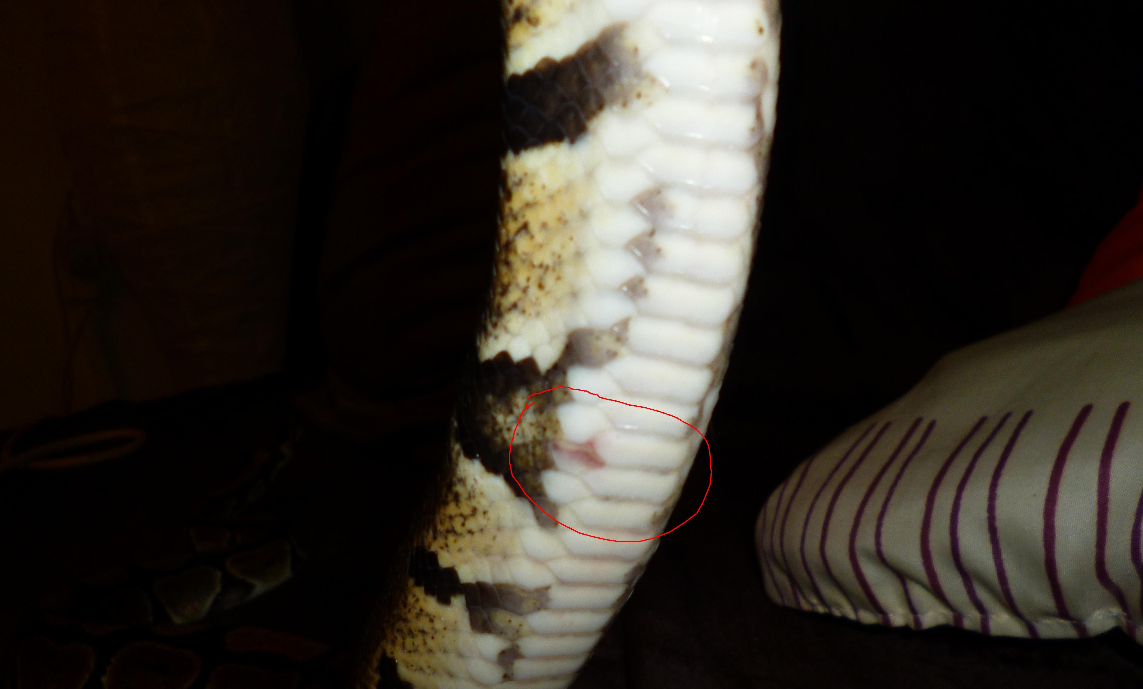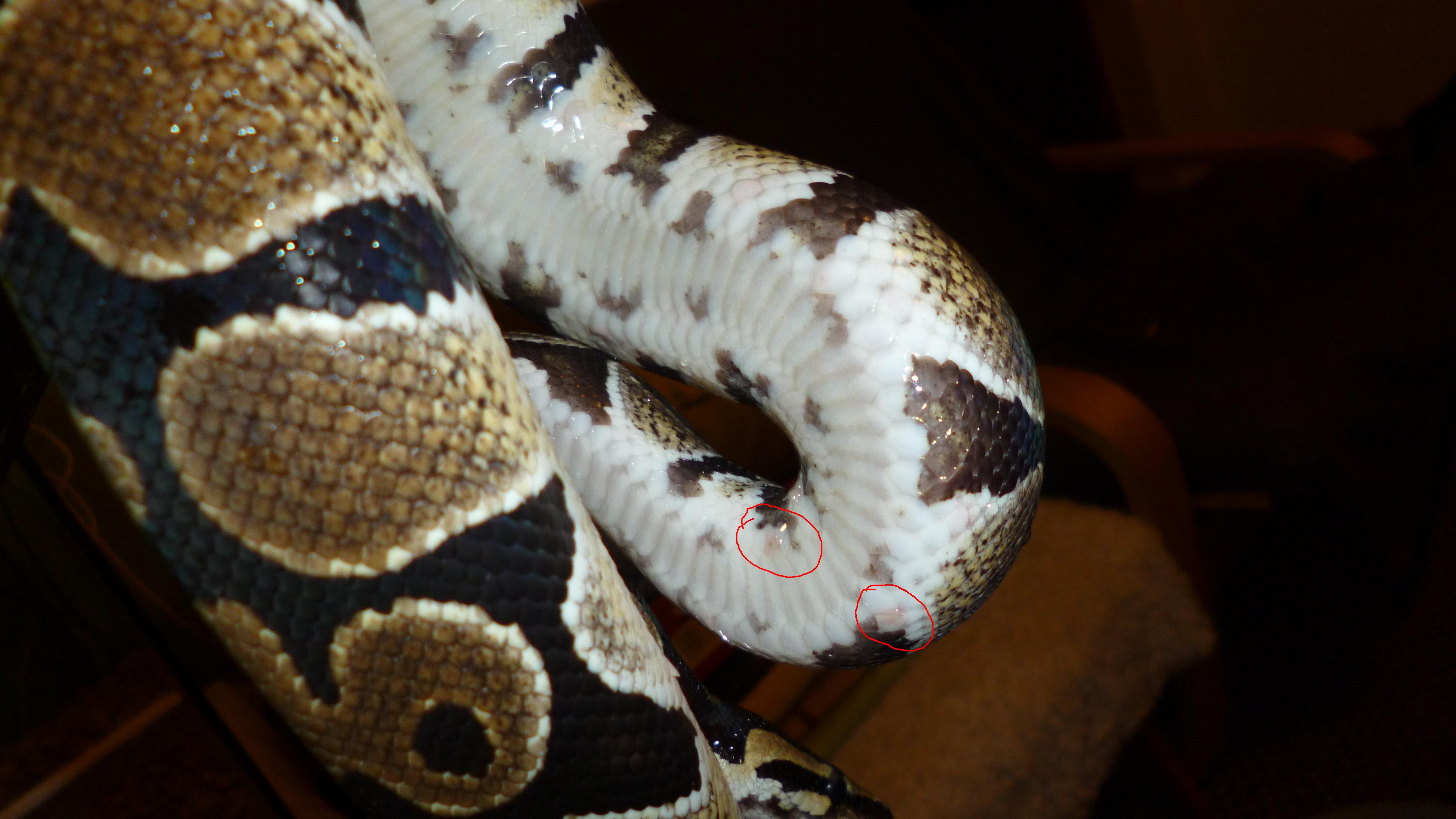 Krajta.. problém-růžové fleky na břiše!! Poraďte..