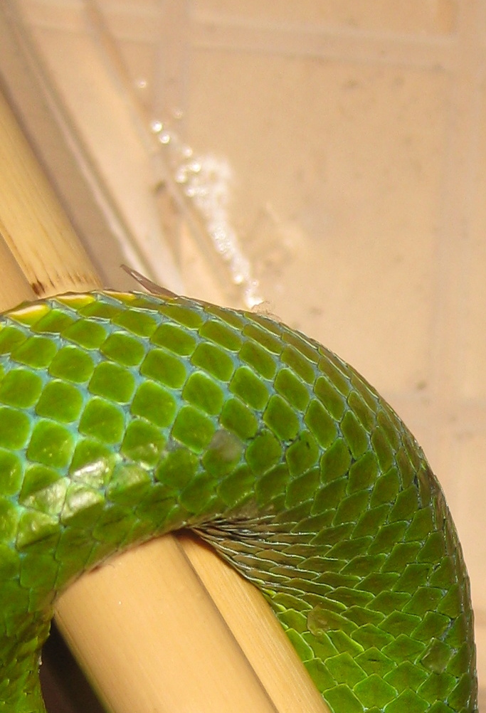 Poradí mi někdo nebo ostatním, které to může postihnout také? Problém nastal před měsícem u dvouleté samice T.vogeli.Problém s vyměšováním. Natráveno bylo, ale v poslední fázi byl trus částečně tvrdý (žlutobílá tvrdá šištičku o délce cca. 1cm) a pří vypuzení se stalo, že částečně vyhřezlo střevo. Ještě, že jsem byl u toho. Tak jsem pomohl a střevo vmasíroval zpět. Od té doby nechce přijmout potravu. Myš bez váhání kousne, podrží ale po nějaké době pustí a nechá. Dnes jsem nafotil co se stalo v posledních dnech kolem kloaky a začala se na několika místech odlupovat odumřelá kůže (jako při svleku) z jednotlivých šupin a to i na břiše.