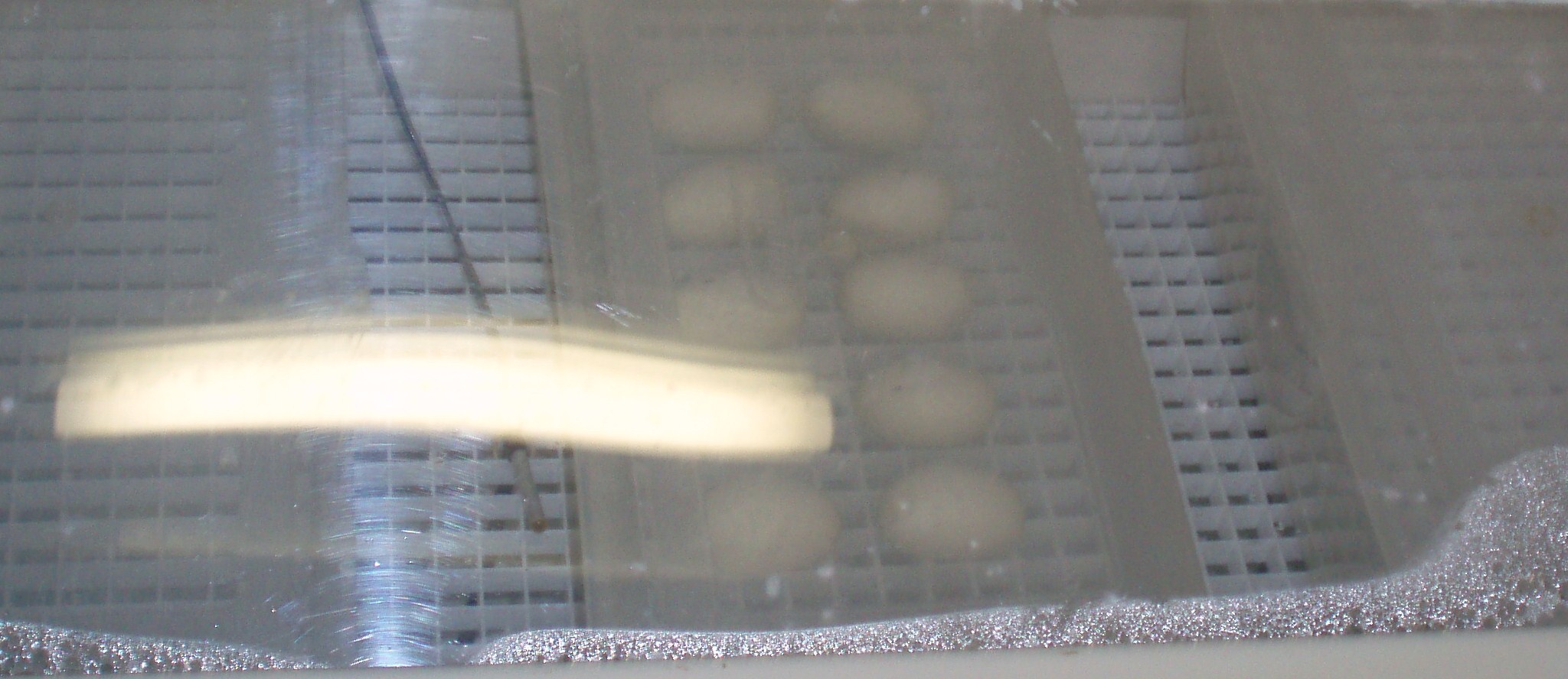 Podotýkám že ta podložka musí být mírně pod vodou.. a na ní mám teprve položené krabičky s vajíčky s přímým kontaktem s vodou pro lepší udržení teploty.