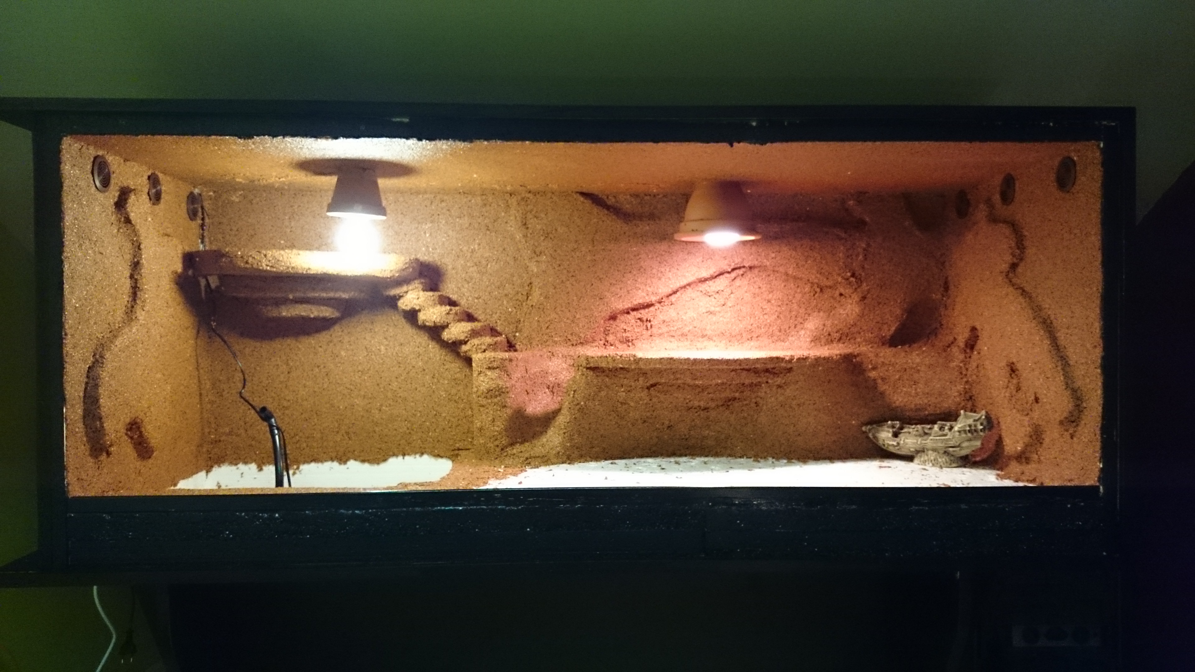 tohle terárko je celé blbě, tam je vůbec nedávej...opakuji, jsou to stromoví ještěři, co potřebují ubikaci orientovanou na výšku, nebo max. do krychle. Tohle je terárko tak na vousatky, jak už bylo psáno výš.