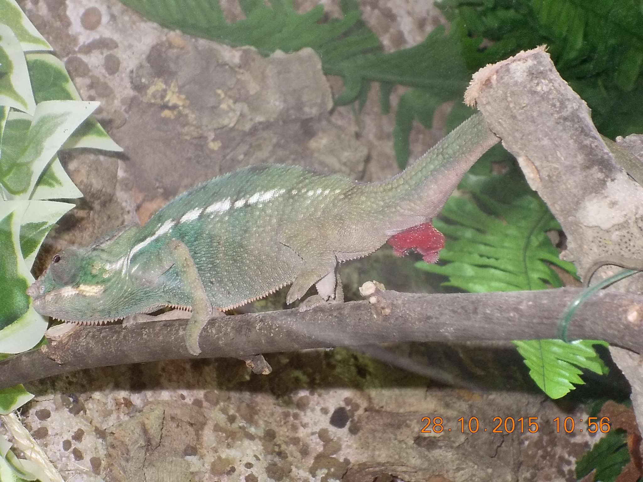 prosím, mohu navázat a zeptat se, zda se v případě našeho 5ti měsíčního samce chameleona pardálího nejedná o nic vážného? Obávám se, aby nešlo o vyhřezlou kloaku. Červený útvar vytlačený z konečníku se objevil dvakrát v jeden den, nejprve na cca 15 minut, po půlhodině ještě jednou, to jen na pár minut. Těsně předtím chamíkovi zduřel kořen ocásku (2. foto). Krev žádná. Toto se stalo před 2 dny, od té doby nic. Chameleon baští i pije, bobky vypadají v pořádku.