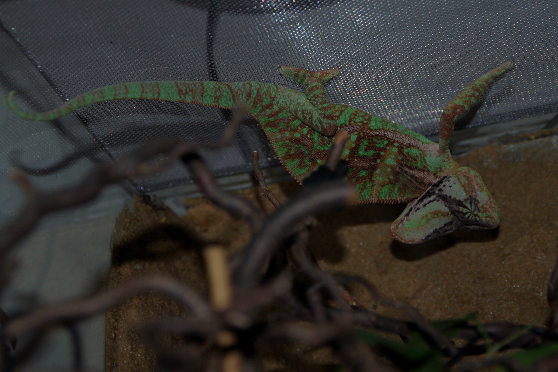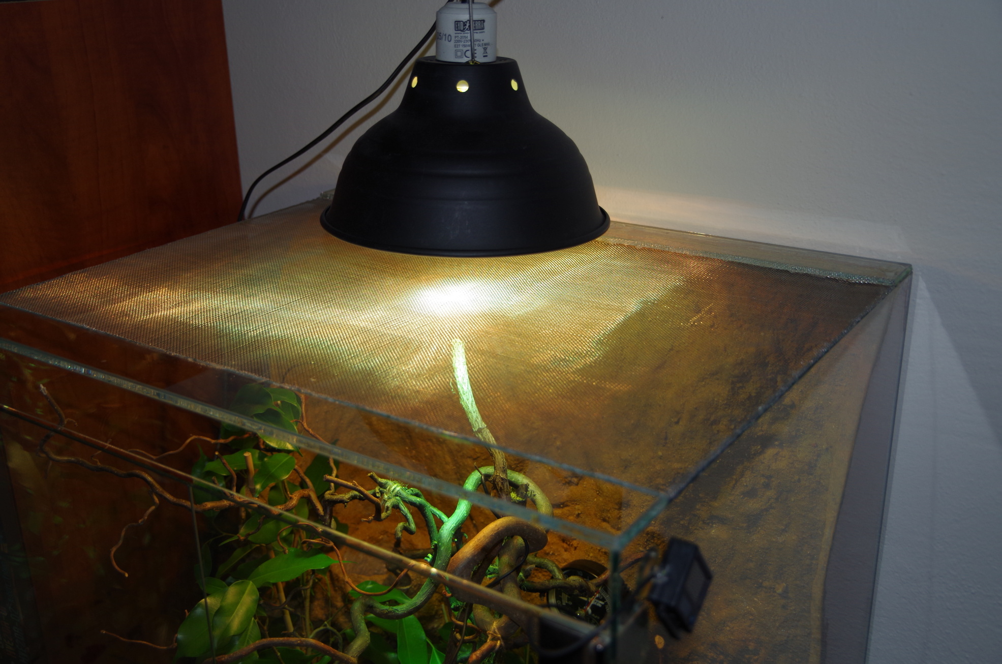 už nějakou dobu mám problém s chameleonem. Né, žeby nežral vůbec, sežere cca 10 středních/velkých cvrčků týdně. Problém trvá už přes měsíc, snažil jsem se hledat, jestli nemá někdo stejný problém, ale nic jsem nenašel. Nejdřív jsem si myslel, že má problém se cvrčkama, tak jsem zkusil půst, co jsem někde na netu vyčetl, ale nepomohlo. Potom jsemzkusil jiný druh potravy - šváby ti mu nejeli vůbec a netknul se jich. Pak mě napadla žárovka. K výbojce jsem měl jako zdroj UVB: 80W UVB E27 Solar Raptor, která vydávala takové divné světlo a chameleonovi se pod něj moc nechtělo. Navíc začla blbnout, blikat a nerozsvěcovat, jak má (nevím, asi výkyvy v síti). Tak jsem ji vyměnil, pořídil jsem: EXO TERRA Reptile UVB200 a zdá se, že pod ni leze úplně normálně, ale co se stravy týká, tak žádná změna. Je to vcelku bojácný kousek, pořád se schovává, ale myslím si, že hlavní důvod je, že v týdnu skoro nikoho nevidí. Co se víkendu týká, tak jak se rozkouká, lozí normálně. Ale naopak se snaží dostat z terárka pryč, zkouší to párkrát za den. Myslím si, že mu něco vadí, ale nevím co :-(