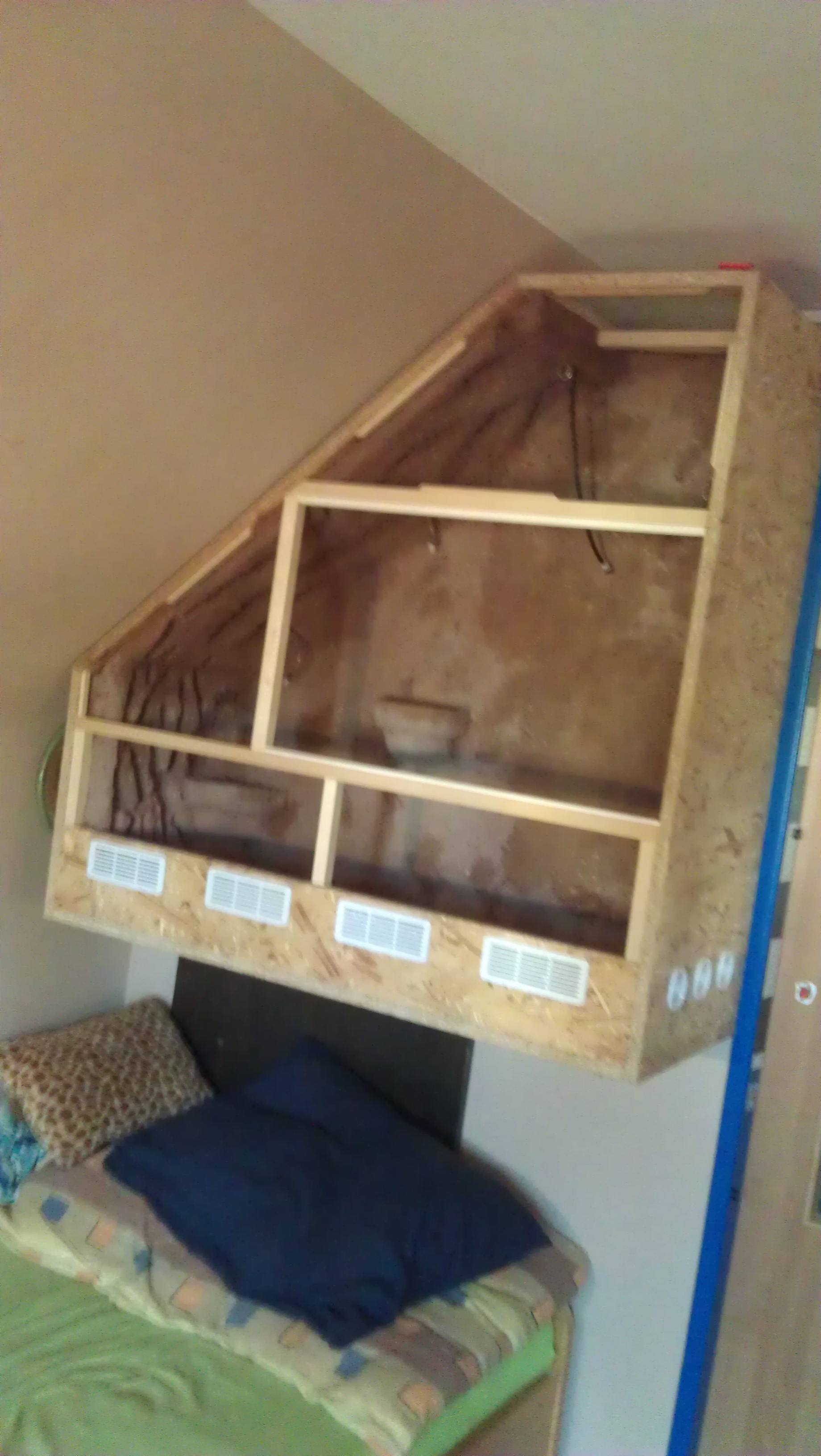 Terárko je to velké, takže by toho tam šlo poměrně dost. Ale nevím jak to udělat s tim zkosením. většina chamíků potřebuje hodně větrání. Nevím jak by to bylo s cirkulací. Mohu se zeptat co taM bylo předtím? Mohli by tam být stromový gekoni. Nebo anolisové.