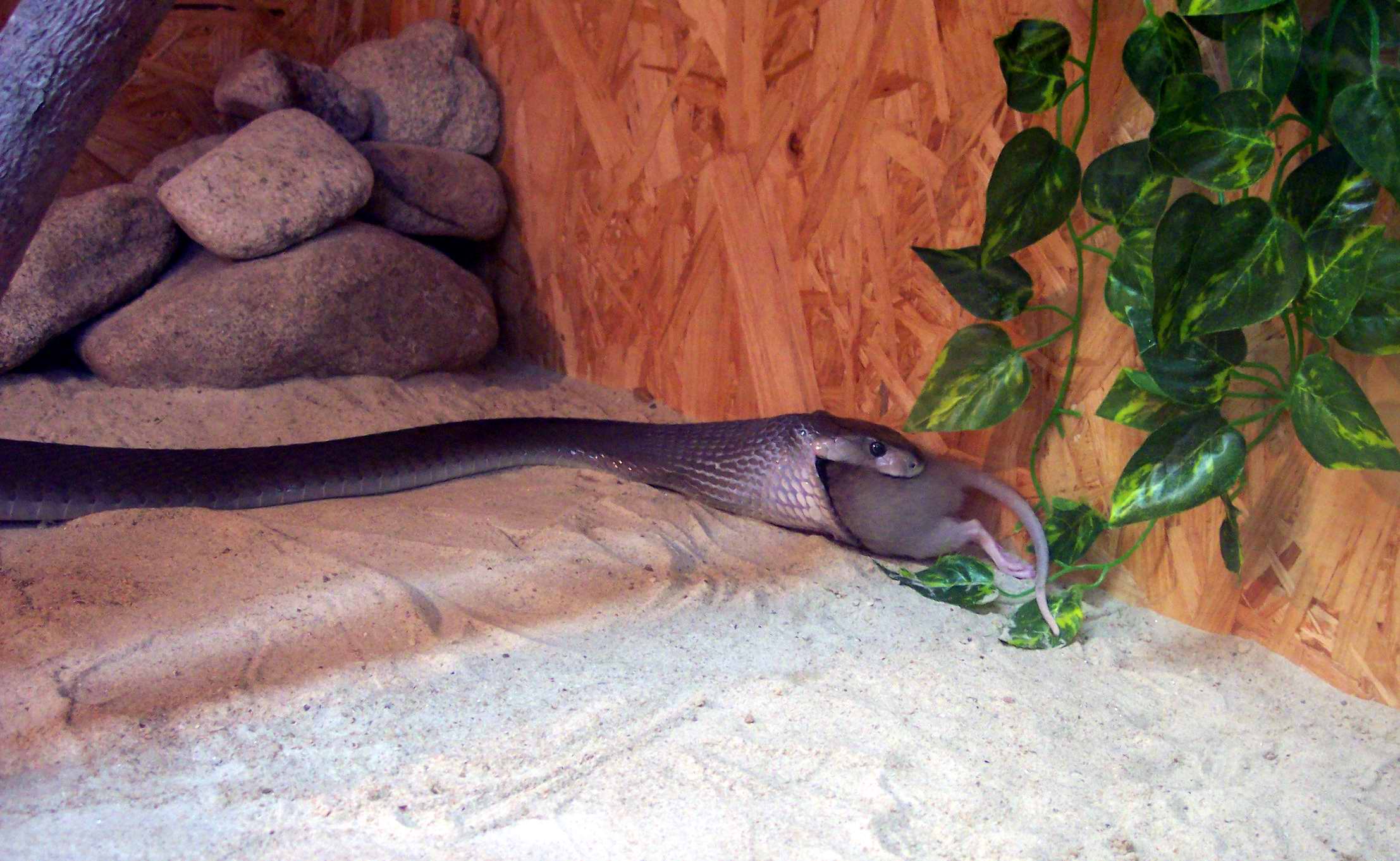 Tak přidám taky jednu mambičku...Mám dotaz, je normální, že mamba již od půlky prosince vůbec neaktivuje? Nežere, je stále v boudě, pouze při vyrušení se staví do obranného postoje a útočí... Teploty jsou kolem 18 st. v noci do 25 st. ve dne, pod žárovkou by měla víc,ale vůbec se nevyhřívá, ačkoliv do prosince aktivně vyhledávala teplo (oblíbená pozice- namotaná v kabelu nad žárovkou). Je to zvíře po rodičích z JAR, takže nějaké to lehké zimování je asi běžné, ale připadá mi to už dost dlouho...Délka je kolem 60 cm, naposledy žrala začátkem prosince, že by nějak hubla mi nepřipadá...