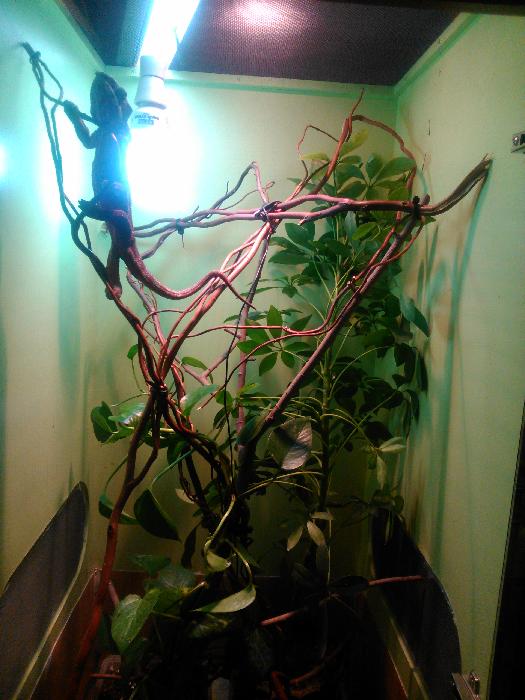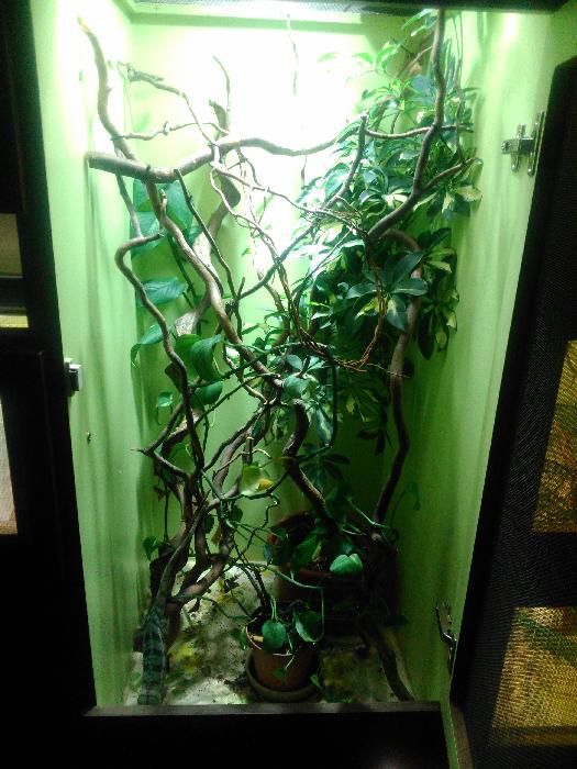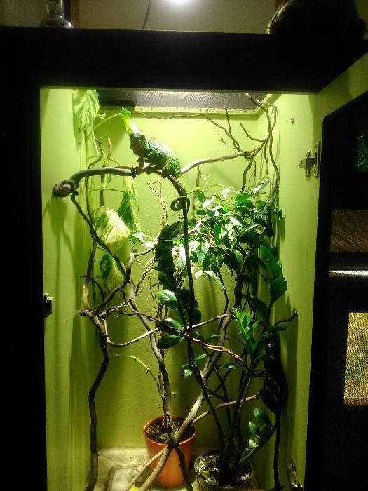 Ok, jen bych teda ještě upravila větve, aby se chameleon k tomu reptiglu dostal fakt na bezprostřední vzdálenost, sice na fotce nevidim, kde ho máš, ale přijde mi, že ty větve jsou relativně daleko od stropu... U dospěláků už by popálení hrozit nemělo..