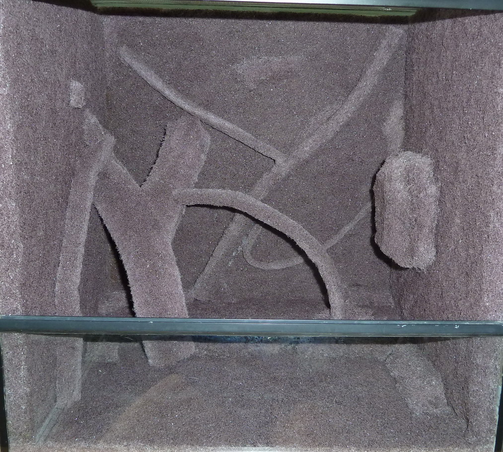 Foto v den realizace - nalepení Epiwebu na stěny terária, pak po měsíci a detail z jednoho místa asi po 3 měsících