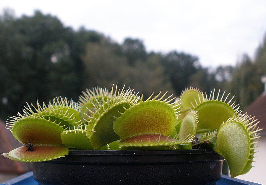 Naopak, mucholapka potřebuje čerstvý vzduch. V době vegetace musí stát v podmisce s vodou, ta by neměla vyschnout (a zase ne moc vysoko, aby mucholapce neuhnila cibulka, stačí cca 1-2cm podle velikosti květináče), ale jinak žádné akvárko. A na balkóně je to pro ní ideální, vybrat místo, kde svítí slunce co nejdéle, když to bude jenom ráno/dopoledne, nevadí. Na zimu je dobré dopřát jí chladnější místnost a nepřelitý, jen vlhký substrát. Odpočine si a na jaře vyrazí v plné síle