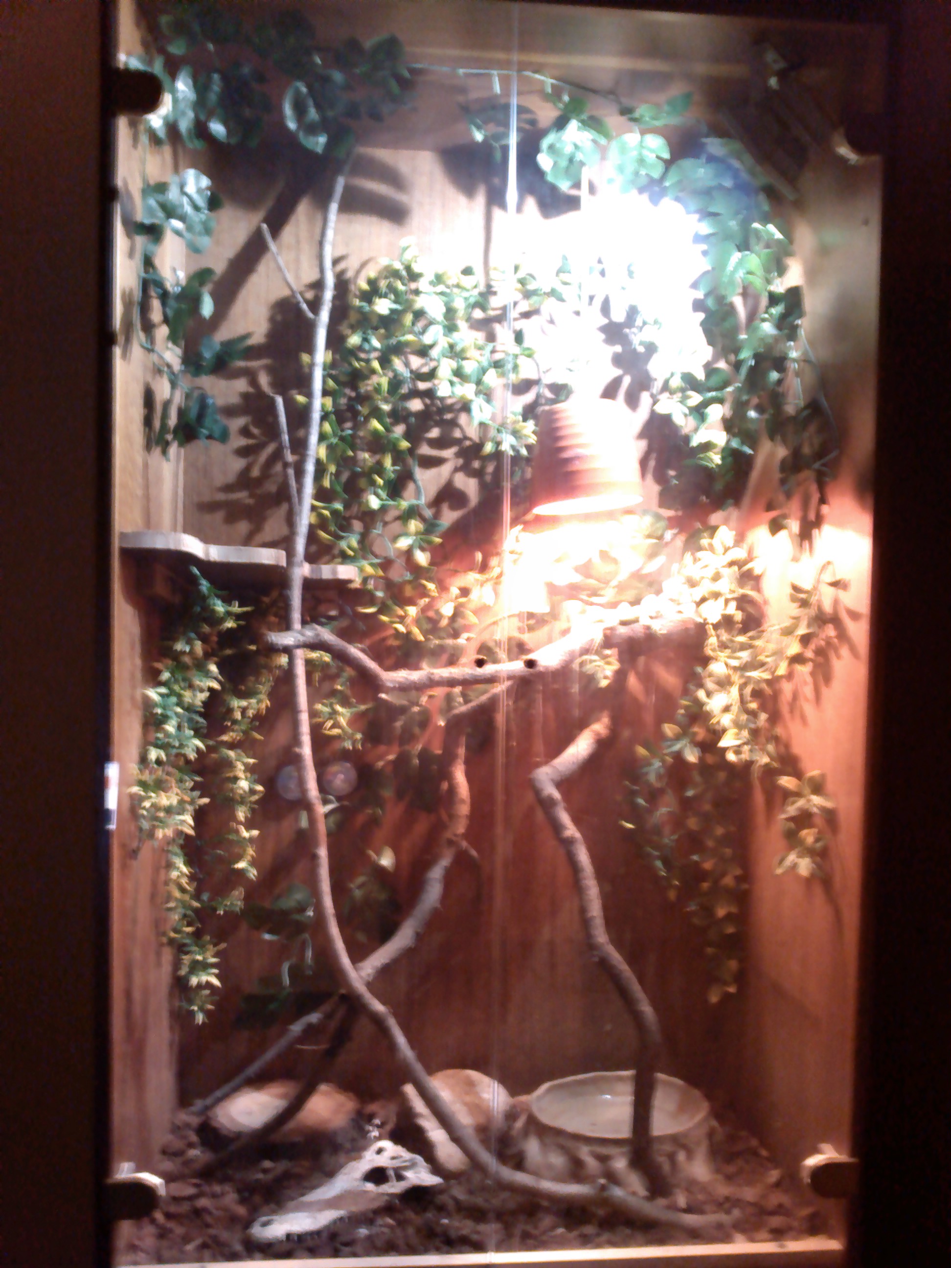 Má tam 10W halogen a lampu se 40W žárovkou. Krmím ho ledovým salátem, pampeliškovými listy a ovocem.…