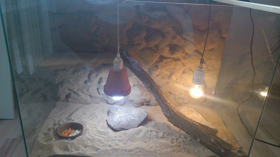 Co zlepšit? Asi všechno. Když pomineme, že akvárium je na rybičky a měli byste pořídit terárium, tak špatně je vybavení, světla, větrání...