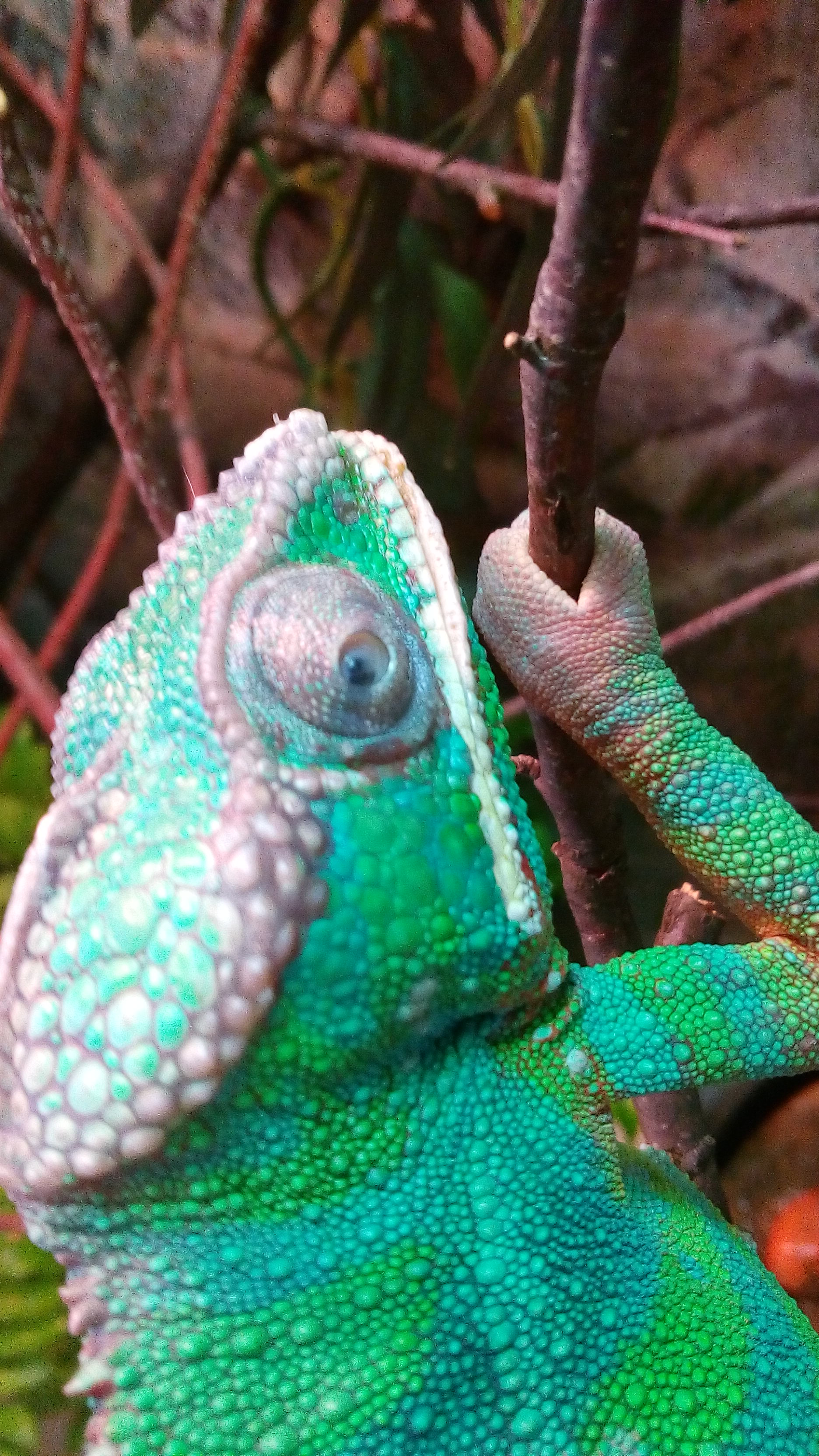 Dobrý den, potřebovala bych radu´, už nevím co s tím mám už skoro 2 letého chameleona pardálího a zlobí nás oko, za začatku jsme byli u veterináře dal nám kapky nijak mu to nepomohlo, tak jsem mu oko začala mazat opthalmoseptonexem oko se mu trochu zlepšilo, ale nyní se mu to opět horší. Vyměnili jsme v teráriu všechno jak osvětlení tak píseček, tak větve. a přijde mi že je to horší a horší. Oko má ošklivě zakalené. Neznáte nějákeho veterináře u Karlových Varů? Přikládám foto.