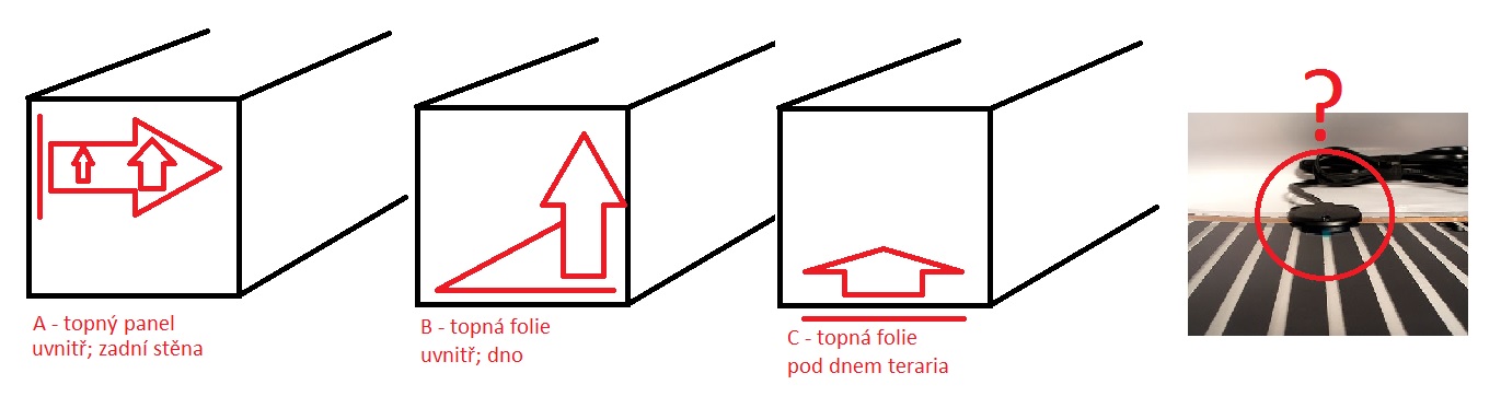 Též mě to napadlo dát folii či topný kabel pod terárka. Jak tlusté jsou ty herpteky u dna? Plánoval jsem to dělat v rozmezí od 6 do 12 mm. Podle nějakého návodu ze zahraničí. Pár jsem jich už viděl. Každopádně mám ještě 25W topný kabel, tak bych mohl využít i ten, ale nechci ho silikonovat přímo na nábytek. Přes plastové boxy, kdeje tloušťka max 4mm to hřeje dobře.