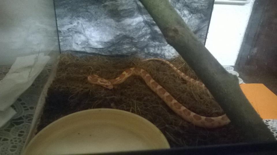 Dobrý den, těžko říct jak přesně je naše užovka stará, vlastně nám ve zverimexu neřekli ani jestli je to samec nebo samice a my nejsme natolik zkušení abychom zjistili co a jak. Jak už jsem psala, máme ji od ledna 2015. Koupili jsme jí zatím menší terárko, asi výška 30, šířka 25, řekli nám že na prvních pár měsíců to stačí. Máme už rozpracované velké pro ni, ale zatím se na něm stále pracuje. V terárku má misku s vodou, domeček a substát je klasická univerzální kokosová drť. Dokud jsme nepřivezli druhého hada, žrala úplně v pořádku, nebyly s ní žádné problémy. Zhoršila se až teď po dovezení korálovky. V příloze zasílám nějaké ty fotky - neručím moc za kvalitu, jsou jen z mobilu. První tři jsou foceny asi před dvěma/třemi měsíci, další dvě dnes.