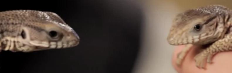 Varanus exanthematicus - odlišná velikost zorniček.