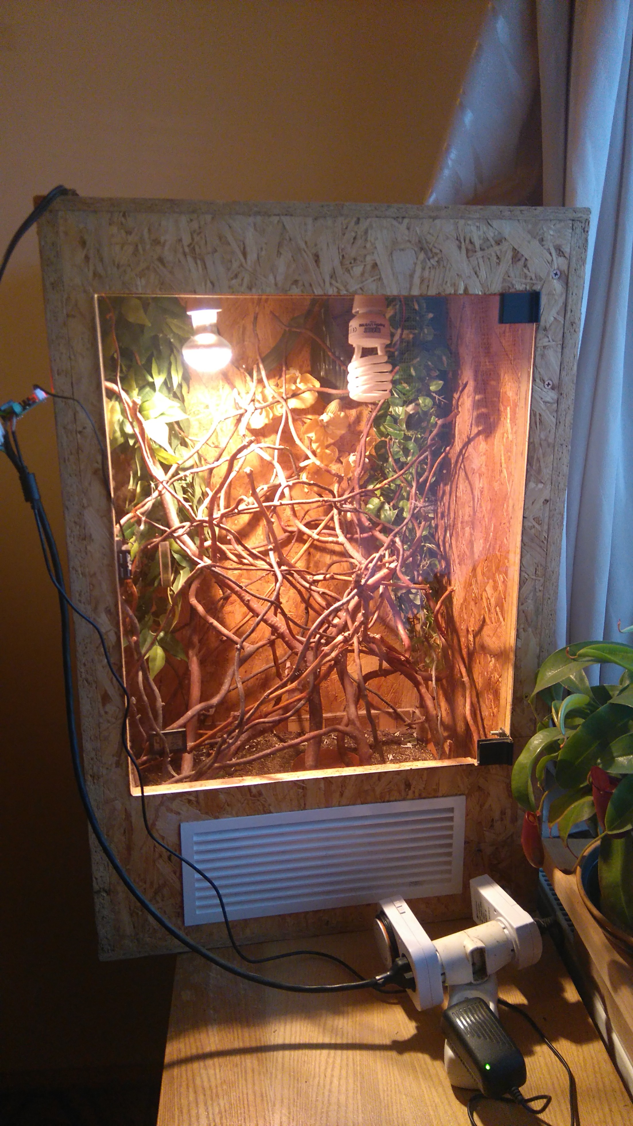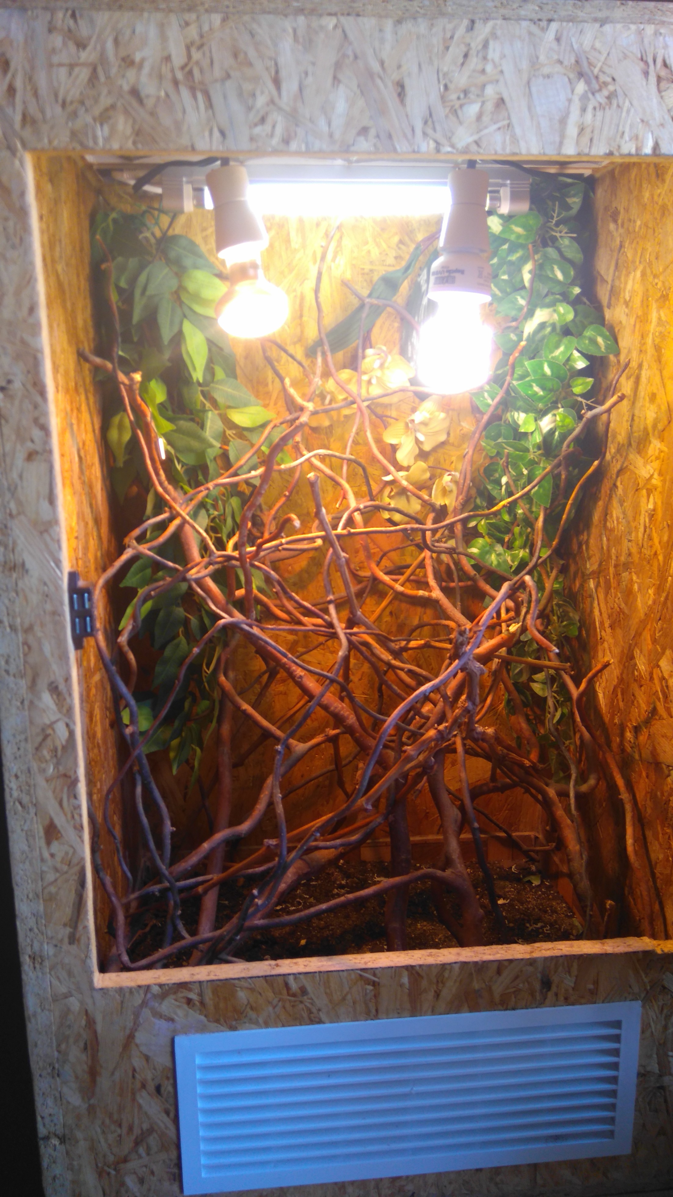 terárko bylo nové a větránízvrchu má asi 1/3 až 1/4 stropu,chameleona v něm mám asi kolem 9 měsíců ze začátku byl klidnější ale asi po pul roce se začal nafukovat a prskat jinak do terárka mu furt nešahám jen když potrebuju nakrmit a vyčistit před dvouma dnima jsem mu tam místo repti glo uvb 200 dal reptiglo uvb 100 nechal tedy běžet celej den namontoval linearku denní světlo a otočil jsme terárko směrem do okna aby na nás neviděl a výrazně se to zlepšilo, teď je vylezlí skoro furt mezi uvb a výhřevnou žárovkou a každím dnem mě příjde zelenější jen se furt bojí člověka. topnou žárovku máte namysli dát objímku na strop terárka a aby v terárku čouhala zestropu jen ta žárovka ?jinak pod tepelnou ma určitě tech 35-40 stupňů jen mám občas problém s přehříváním terárka že je někdy ve spodní části terária i 28-30 stupňů.