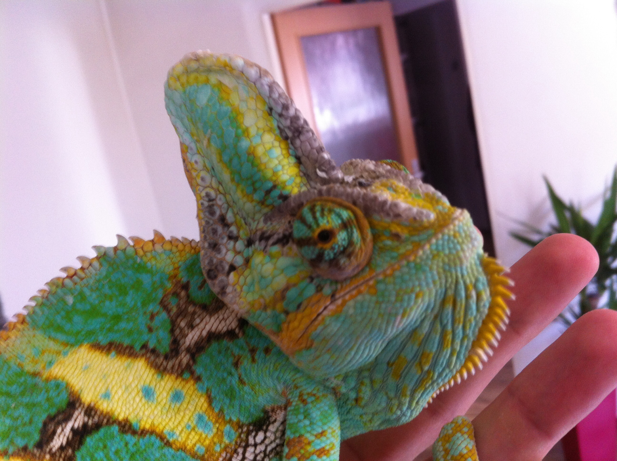 Chameleon jemensky natekle oci a přilbicka