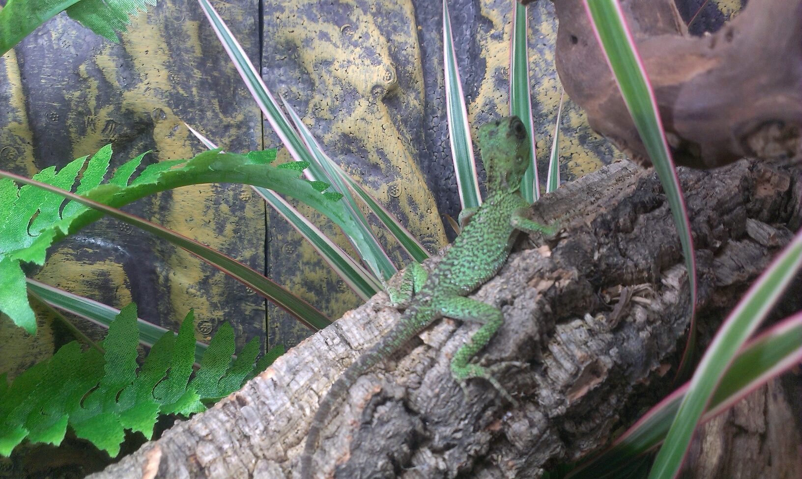 takhle zrovna moc ne, Acanthosaury nejsou kočinčíny. Je to druh, který sedí na kolmých kmenech, ne na vodorovných větvích. Takže jí tam místo té kolmé velké větve dej pár větví na stojáka a doplň tam stinná místa třeba pod závěsama rostlin. Tyhle agamy celkem nerady přímé světlo, takže by sice měly mít nějaký výhřevný zdroj ( pokud tam mají chladnějc) a taky slabší zdroj UV, ale zároveň ubikace musí být upravená tak, aby světla neosvětlovala celou ubikaci.