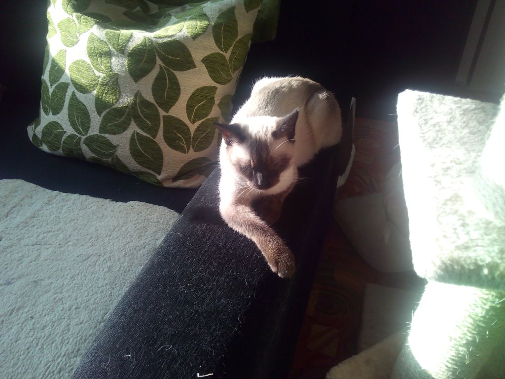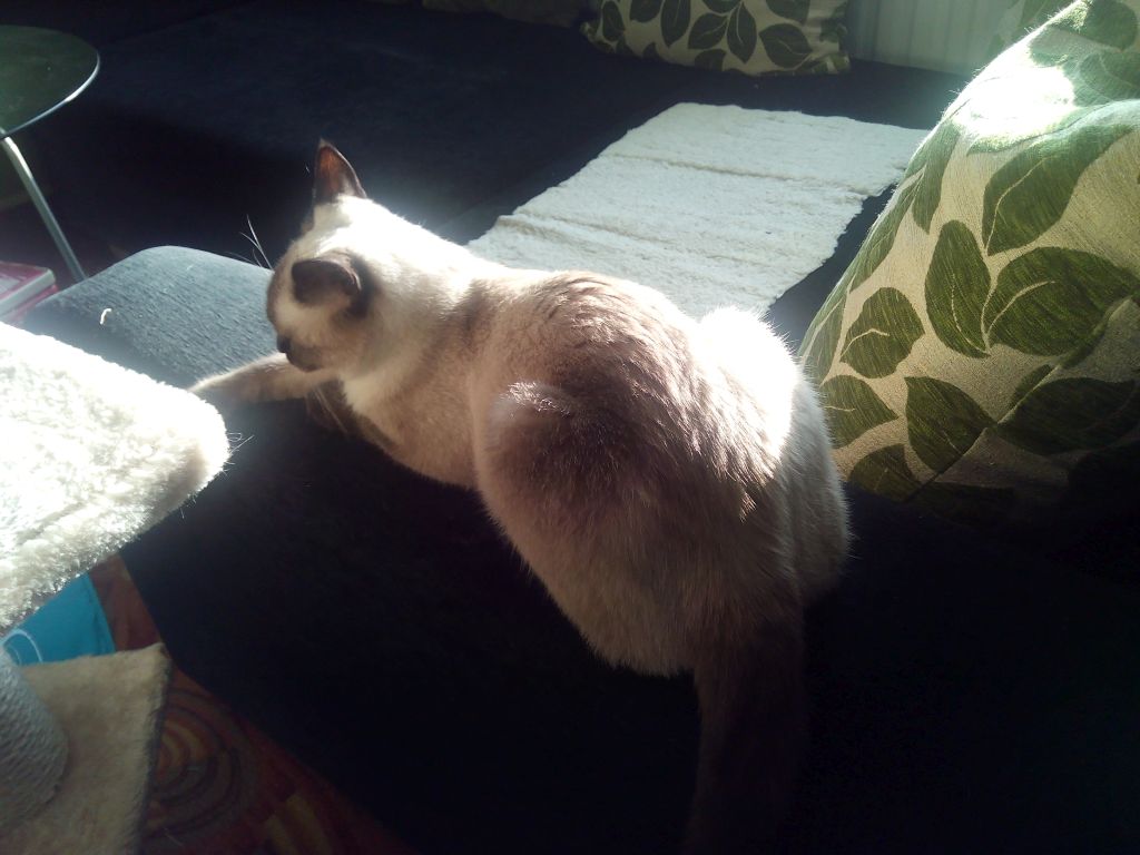 Tak naší thajské číče se daří velmi dobře, váhu nabírá dobře, jde to na ni i vidět, také i o něco vyrostla a vybarvila se více do tmava, takže už není tak mléčně bílá. Kastrace se na ni už projevila, hodně zlenošila, potvora jedna :) Povahově je stále přátelská, vyžaduje pozornost mňoukáním a neustále se plete pod nohama, prostě kočka jak má být :)