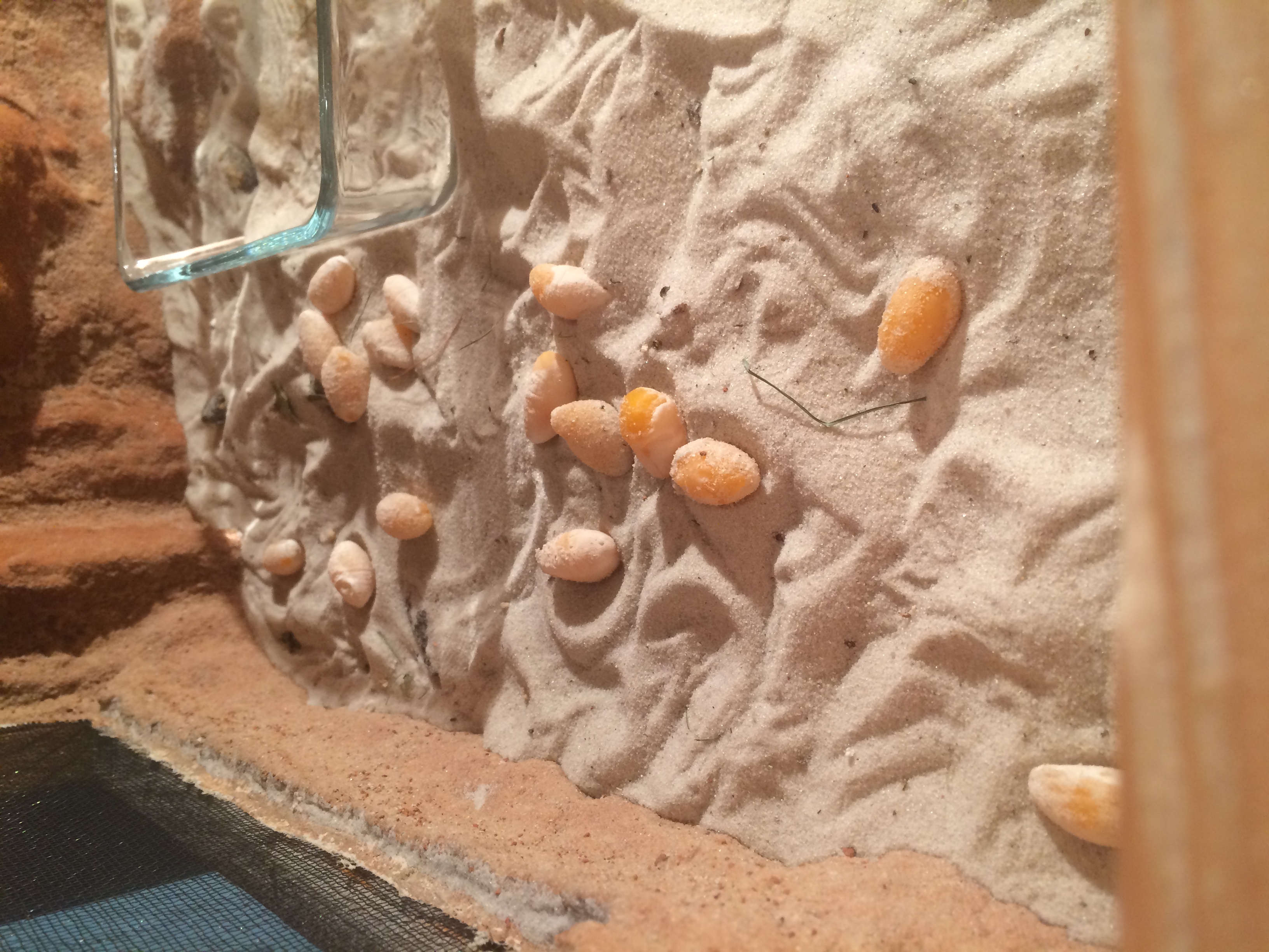 mam uz 2,5 roku agamu vousatou. V obchodě mi kdysi rekli, ze je to pravděpodobně samec, ale 100%ně si jisti nebyli. Agamu jsem tohle léto začal davat ven na slunicko do výběhu a zvětšil ji terárium. Pred měsícem začala agama najednou strasne hrabat do písku a obcas se to opakovalo. Dnes rano na me v terárium čekalo překvapeni viz priloha (obrázek). Vypada to jako vajíčka (jedno jsem rozřízl- uvnitř je typicky žlutá hustá tekutina), ale nechápu to. Agamu jsem kupoval 3- měsíční a od te doby nebyla v kontaktu s jinou agamou a také by to musela byt samice. Poradili byste mi prosim, o co se jedná, opravdu to jsou vajíčka? Dekuji