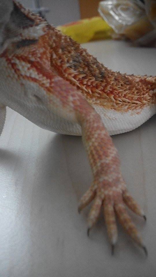 naší agamce - sameček cca 4 měsíce - ze dne na den zbělala tlapka. Po pár dnech na lokti začal prosvítat proužek původní barvy. Občas tlapku odlehčuje a mívá jí zvrácenou, že "našlapuje" na zápěstí. Předpokládáme, že jde o svlek, ale máme agamku jen krátce, proto se radši ptáme na zkušenosti ostatních chovatelů.