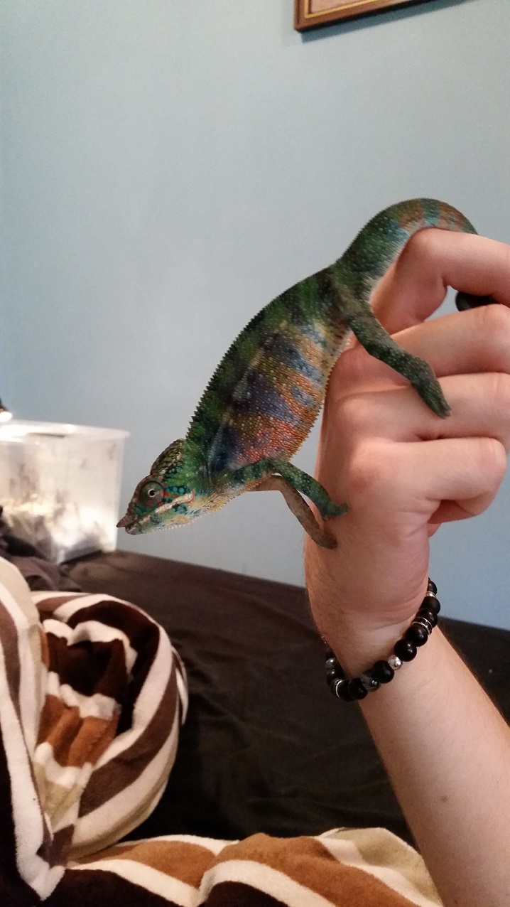 Ps: rosim rano a vecer, teplota pod zarovkou 38 a dole 25.pouzivam reptiglo uvb a jeste dosvicuji zarivkou. Jinak je chameleon aktivni. Podavam 6x tydne vapnik a vitaminy 1x.