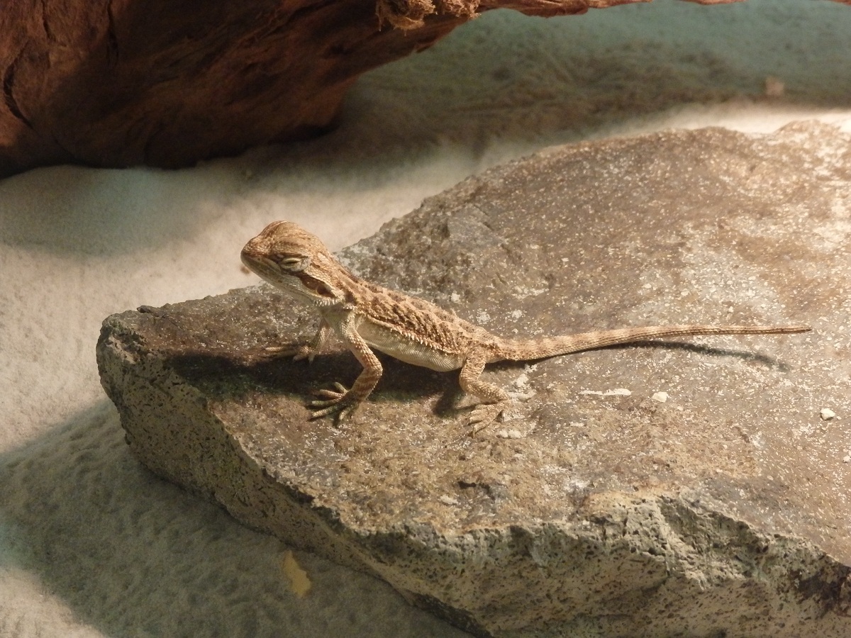 V pondělí jsme si přivezli malou agamku cca 12-14cm.Bohužel je ze zverimexu,ale prý od dobrého chovatele.Nechal jsem se ukecat od dětí. Terárium je 90*45*50cm.Větrání je přes celou délku nahoře cca o 10cm šířce. Teploty snad ok podle měření. Zdroj tepla je bodovka 50W a vedle hned UVB 26 W myslim.Přisvicuji ještě 20W sporivkou.Má pod výhřevem kámen. Dvě malé misky na vodu a zelené.