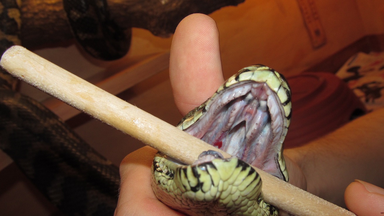 již delší dobou pozoruji nechutenství u 0,1 M.s. variegata - stáří 8 let. Dnes jsem se podíval do tlamky a našel jsem zarudnutí v pravé části horní čelisti a příznaky, dle mého, stomatitidy. Viz fotky. Na třetí fotce je vidět v tlamě trocha krve, nevím, jestli to je způsobeno nešetrnou manipulací nebo citlivostí dásně na pohmat. Budu rád za jakékoliv vyjádření, díky.