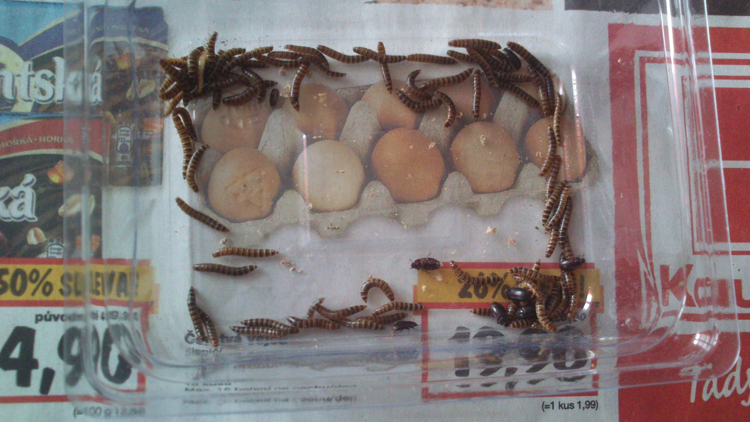 já jsem teď naopak šťastná, že je v tech krmných hmyzech mám. Protože hmyzu nevadí, ale sežerou včas mrtvolky. V kterých se mi pak nelíhnou cizopasné mušky. Navíc se tihle potemníčci opravdu dají zkrmit.