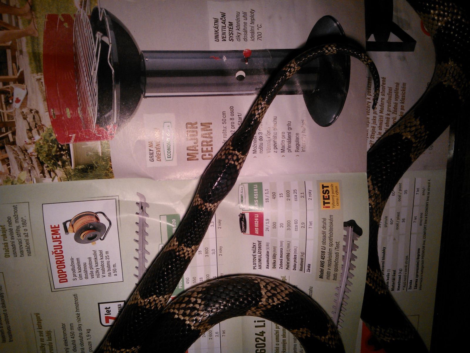 mám dotaz ohledně boule v ocase Korálovky L . G . Californidae . Samice je stará zhruba 9 let , mám jí od roku 2011 , každý rok měla mladata . Boule na fotce v ocase se oběvila v Lednu 2016 při zimování ( cca 14 St . C ), po 28 dnech zimování . To jsem hned ukončil a hada dal do terária . Podle jednoho kolegy jde o tukovou bouli , která by hadovi neměla vadit . Had normálně přijímá potravu , vyprazdnuje se , minule se mi zdalo že výkal hodně vyrazně smrdí , proto sem dávám dotaz o co by mohlo jít . Podotýkám , že had je od ukončení zimování mimo místnost kde jsou ostatní terária , na ostatních zvířatech se nic podobného nenašlo . Boule je tvrdá . Díky za názory , Milan .