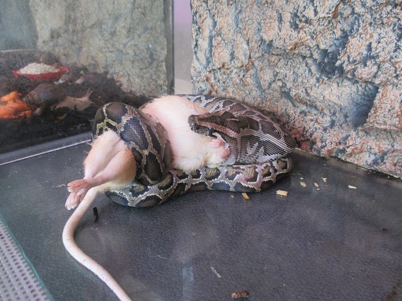 A jak říká Auri, prostě nabídni. Buď bude jíst, nebo ne. Hlavně nenechávej kořist s hadem bez dozoru a nikdy nenechávat v tera třeba přes noc.