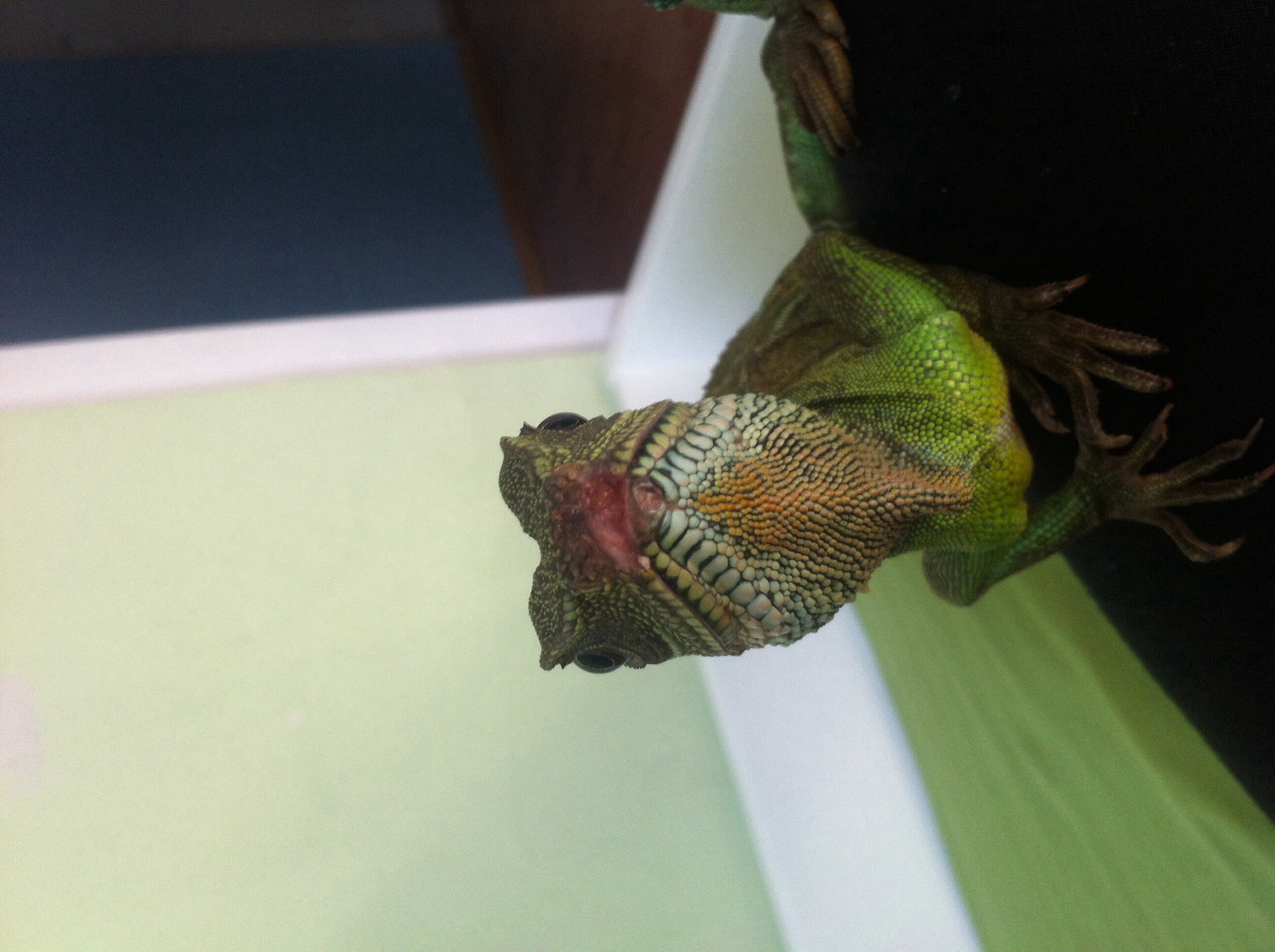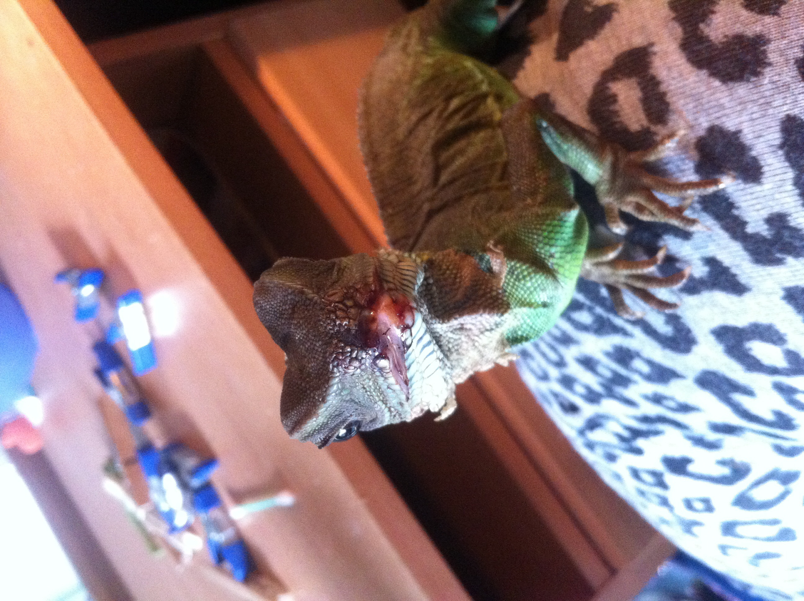 po převzetí jsme si všimlí, že samička má zaschlou krev u rtu a má ho na 2 místech rozseklý, zápáchá jí z tlamičky, chybí ji šupinky a je pohublá. Sameček má taky lehce poraněnou tlamičku, ale je na tom o poznání lépe, jen má navíc kčivý prst. Oba mají na konci ocasu bouličku, čím to je?