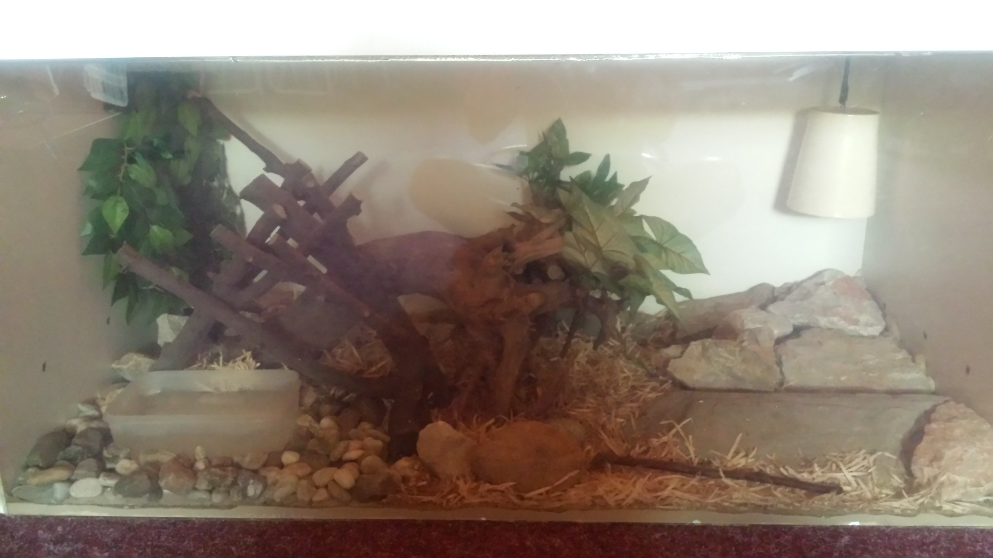 Nicméně by to chtělo popsat trochu terárko a způsob chovu. Asi nejlepší by byla fotografie terária. Má tam nějaký úkryt, nebo je pořád "venku".