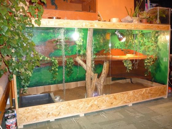Tím teráriem bych asi začal. Přístup klasicky ze předu a pořádné větrání. Krmit bych pak krmil rovnou v teráriu. Chovatelé se asi neschodnou, ale z mého pohledu loví ve svém teritoriu a přeci jen se cítí lépe. A po krmení ho hned nestresujete přenášením do terária. Prostě si zaleze tam kde může v klidu trávit.