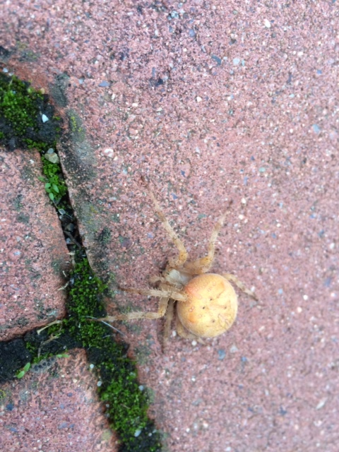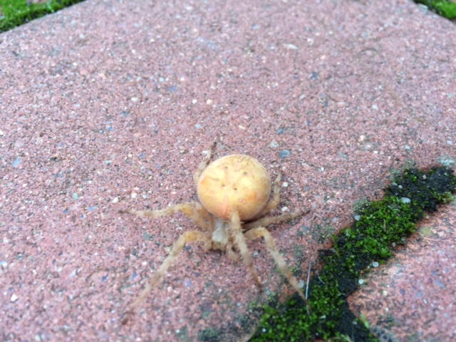 Včera při cestě s dcerou do školy jsme objevily na chodníku zajímavého pavoučka barvy slonová kost,