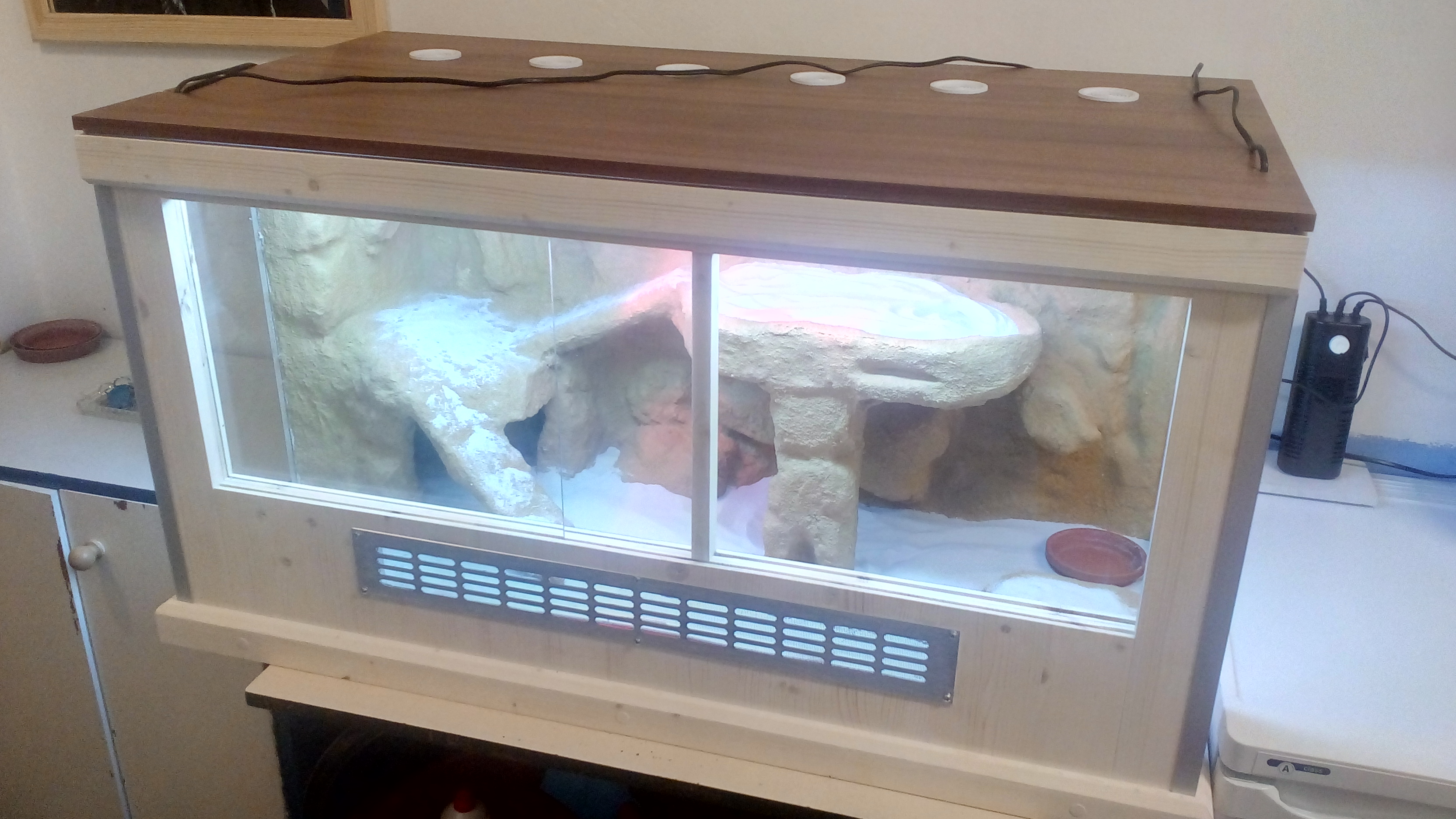 -- spatne osvetleni a vyhrev, jako zdroj UV pokud uz ne vybojku, tak radej nejaky "kompakt", treba Reptile UVB 200 20W, a dat ji k vyhrevnemu mistu, vyhrevne misto udelat normalni obycejnou reflektorovou zarovkou ("bodovkou"), ne timhle predrazenym cervenym nesmyslem. A zarivku - trubici nahradit necim poradne sviticim s dobrym spektrem, Narva biovital treba. Potrebujete intenzivne prosvetleny prostor, a ta UV linearka sviti ve viditelnem spektru prachmizerne ( o te infra lampe vubec skoda mluvit) a navic nejaky smysluplny dosah UV z ni je velmi nizky.