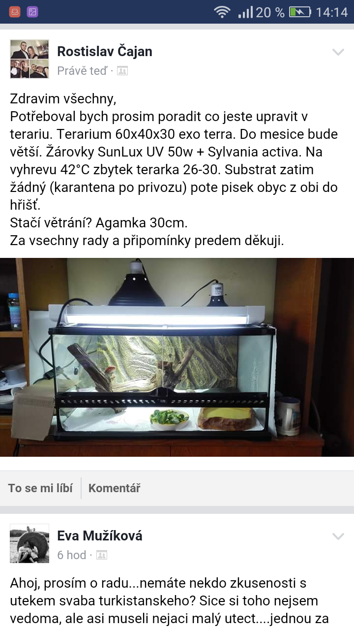 | Dle mne jinak v pohode, i teplota, osvetleni. Agamu bych netrapil nejakym zbytecnym tahanim k veteri… nový lucifer 13.01.2017 20:44 |