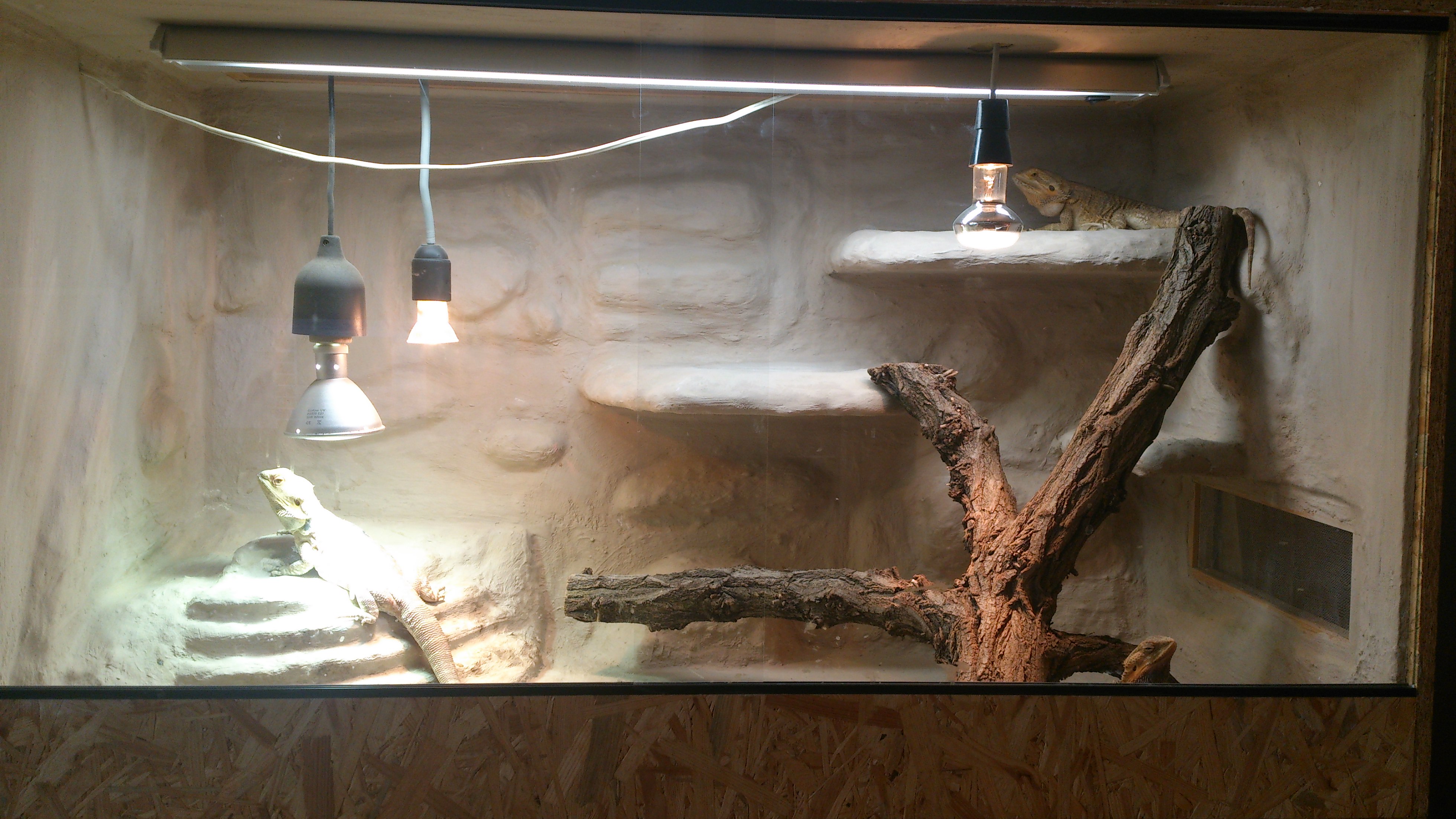 Dobrý den, prosím o zkouknutí terária, jestli se Vám zdá být v pořádku. Až vyberu světla a ustálím teploty kabely odklidím. Má rozměry 120x60x60. Uplně vlevo mám výbojku Sunlux 35 W ze starého (menšího terária), je přes rok stará a ráda bych jí vyměnila. Mám tam předřadník tridonic 35/50w. A teď nevím jestli výbojku zase 35w, nebo 50w. Popřípadě jestli koupit předřadník na 75w i s novou výbojkou. prosím o radu kterou tu výbojku vybrat. děkuji mnohokrát