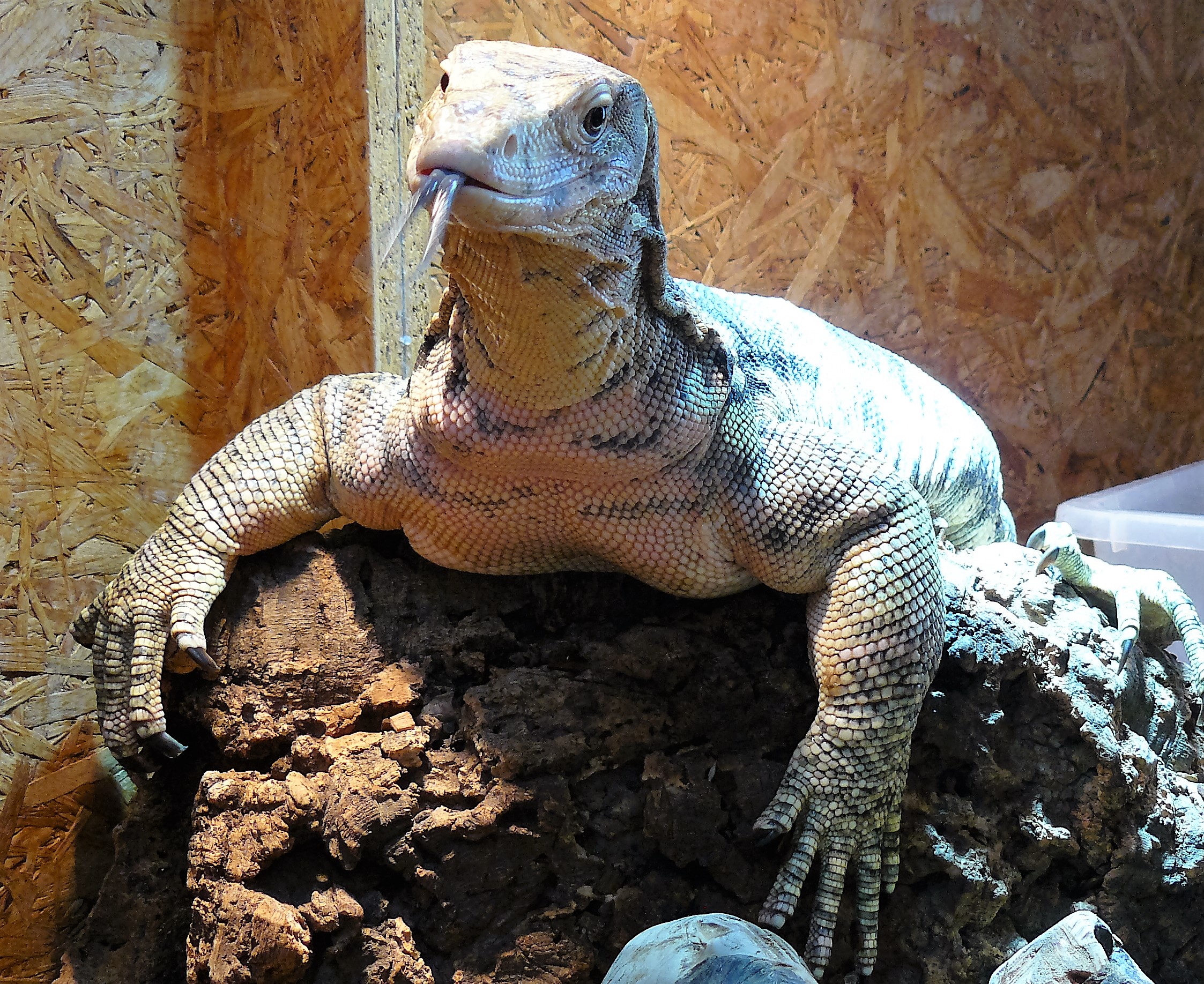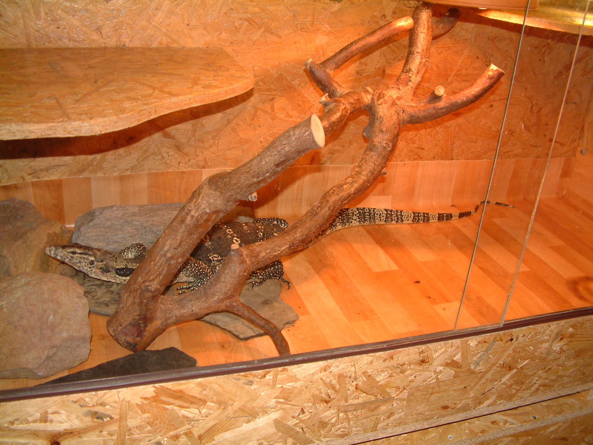 Povaha je jaká je, stále ještě doufám, že varan si časem více zvykne a nebude tak plachý. Ono to možná vyznělo trochu hůře než jaká je skutečnost. V teráriu je taky celkem v pohodě, jenom se člověk nesmí přiblížit moc blízko, pak se začne nafukovat. Jinak velmi doporučuji řádně zabezpečit terárium proti útěku, ač jsem tomu nevěřil, tak i cca 1m varan dokáže z pokoje udělat téměř kůlničku na dříví (poshazovat, co se poshazovat dá, servat záclony, nemluvě o nutnosti vymalovat, když se narve někam za nábytek a začne šplhat mezi nábytkem a stěnou), ale to jsou spíše takové perličky. Jinak to jsou naprosto úžasná zvířata.