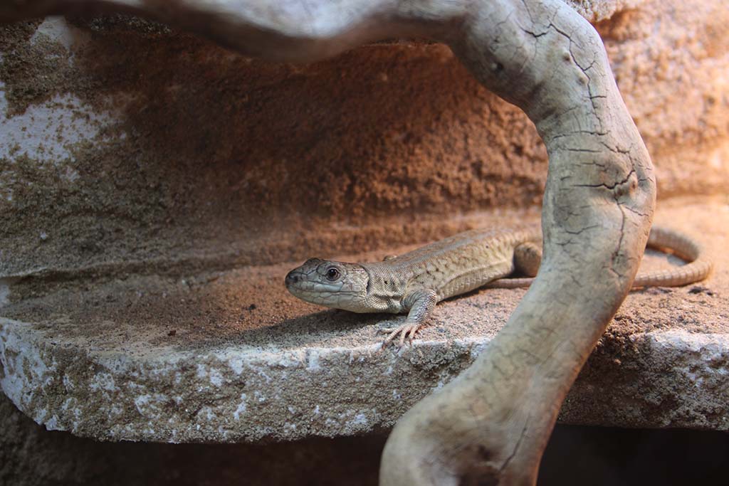 Terárko se poslední měsíce nezměnilo. Jako podklad má písek do dětských hřišť, nějaké kameny a větve. Osvětlení: bodovka na výhřev, kompakt Reptive UVB 200 (cca před měsícem vyměněno za nové), jako zdroj viditelného světla Narva Bio Vital.