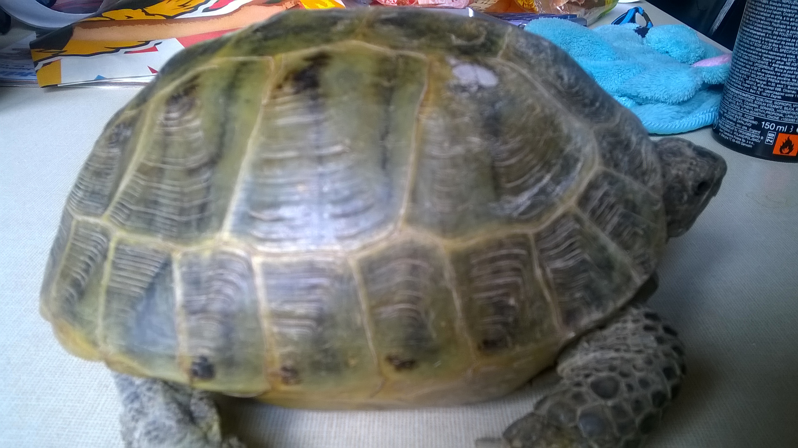 Dobrý den,prosím o pomoc při určení druhu želvy-nalezence z louky.Délka krunýře je 18cm,šířka 16cm.Stáří netuším.Foto přiložím.Děkuji moc za jakoukoliv radu,nezda se mi jako T. Hermani ani gracea..
