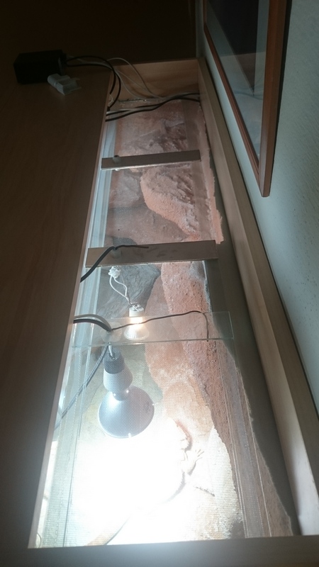 Klidne muze byt snaha o zimovani. Podminky mi prijdou OK, mozna bych se snazil trochu prosvetlit i tu cast vlevo - ale nejspis to fotka dost zklesluje. Agamak moc pekny, kondice mi prijde velmi slusna = zatim se nic nedeje. Muzete zkouset ruzne druhy hmyzu, vetsinou jdou ukecat na zophobasy nebo sarancata. A trvale tam nechat vetsi misku s vodou a pampeliskama (klidne vcetne kvetu, chutnaji jim ;) )