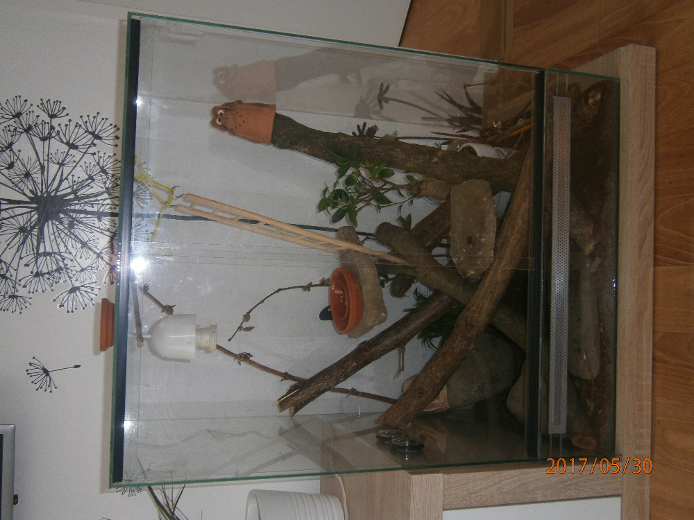 2) Vyřešit osvětlení tera - koukám, že máte jen 1 objímku, takže buď dodělejte ještě jednu a kupte do ní UVB (přesně tohle https://www.superzoo.cz/zarovka-exo-terra-reptile- uvb200-25w/ ne slabší) ta žárovka co máte teď je jen předražená obyč z elektra