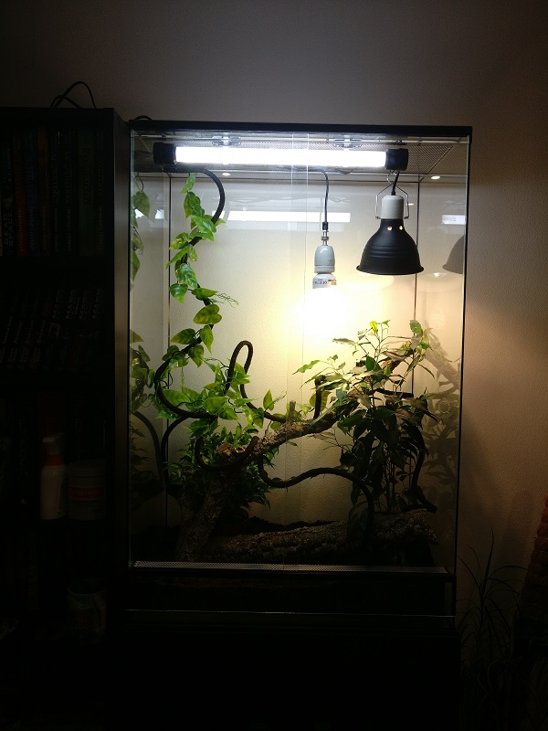 Mohol by prosím niekto zhodnotiť, či je to tera ok, poprípade čo ešte vylepšiť? Mám namieriť tú halogenku presne na miesto, kde chodí ráno pod UVB? Pod UVBčkom je teplota cca 33-34 tak ako to je teraz.