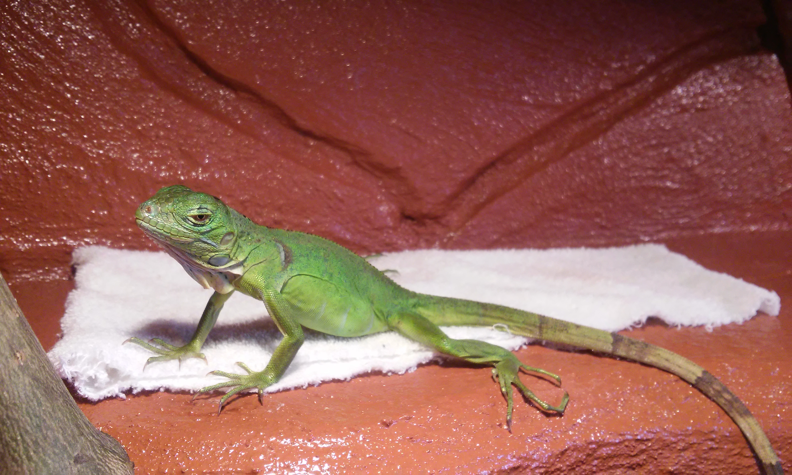 před týdnem jsem si domů přivezla 3 měsíce staré mládě Leguána zeleného. Zpočátku se nedal vzít do ruky, utíkal, švihal ocáskem, prostě zdravé mládě. Po třech dnech začal být nějak moc krotký a jakoby unavený (nijak jsem ho netrápila, mám trpělivost a vím, že potřebuje čas). Teď pořád spí. Nechá se vzít na ruku - vypadá trošku vystrašeně, ale nijak se nebrání, na ruce hned usne, nechá se hladit. (Je to u mláděte normální, aby si tak rychle zvykl?) Z ruky ho i nakrmím, ale pak se nají sám i v terárku.