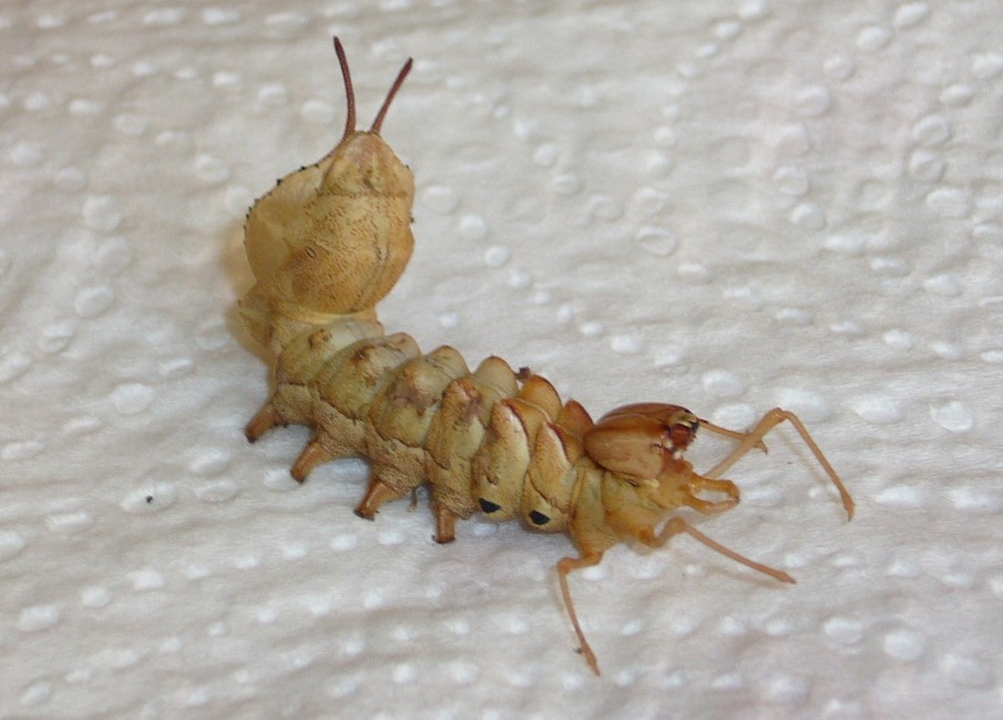 Děkuji, opravdu to bude nějaký hranostajník, ale na zadečku má kratší a tenčí bodáky a barva je taková písková a nohy v předu jsou tenké a a má dlouhá tenká tykadla, které se třesou, jako by mě chtěl zastrašit /také tím zvednutým zadečkem/ Našla jsem ho v lese u Bukovinky okr. Blansko.